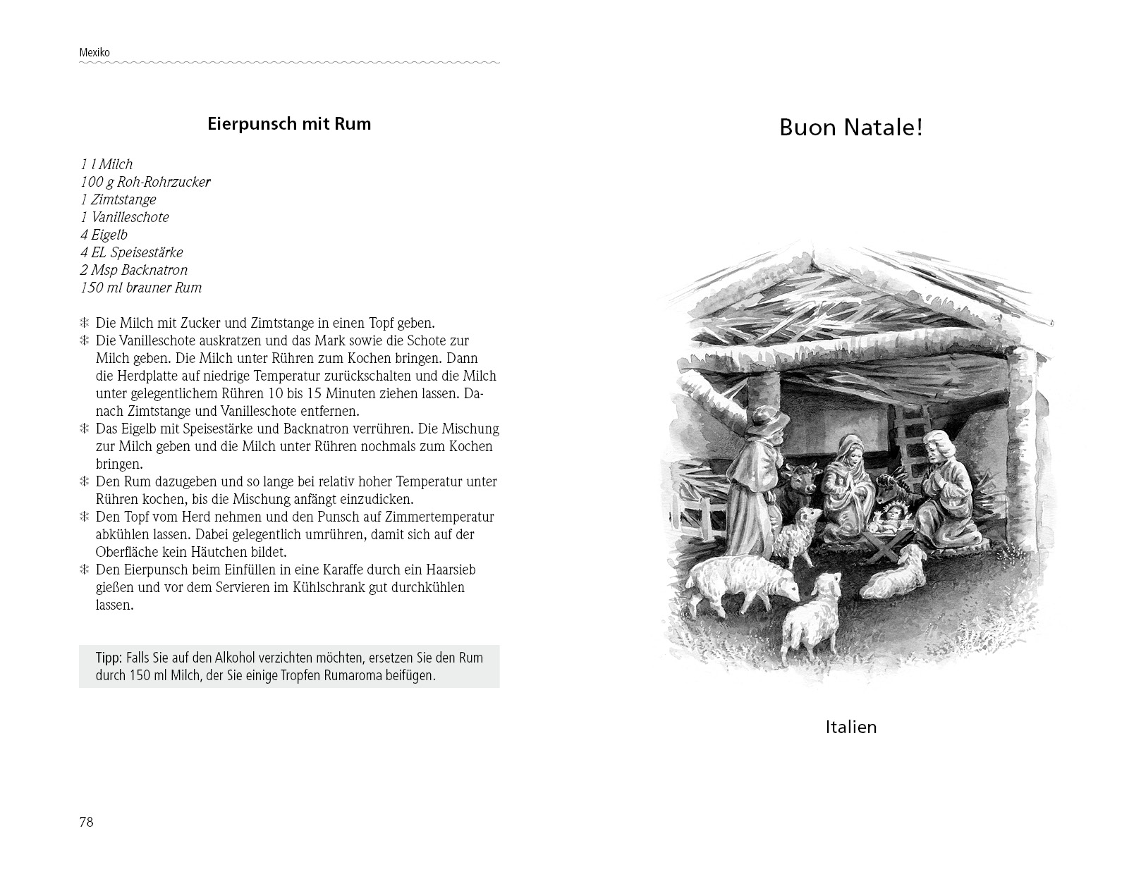 Die Rezeptauswahl reicht von edlen Suppen und Pasteten über Gratins und Tartes bis zu Schlemmerdesserts, Festtagskuchen und Gebäck. Die Rezepte lassen sich zu landestypischen und internationalen Menüs zusammenstellen oder einzeln nachkochen. Wissenswertes zu kulinarischen Weihnachtstraditionen und Bräuchen begleitet die Rezepte.