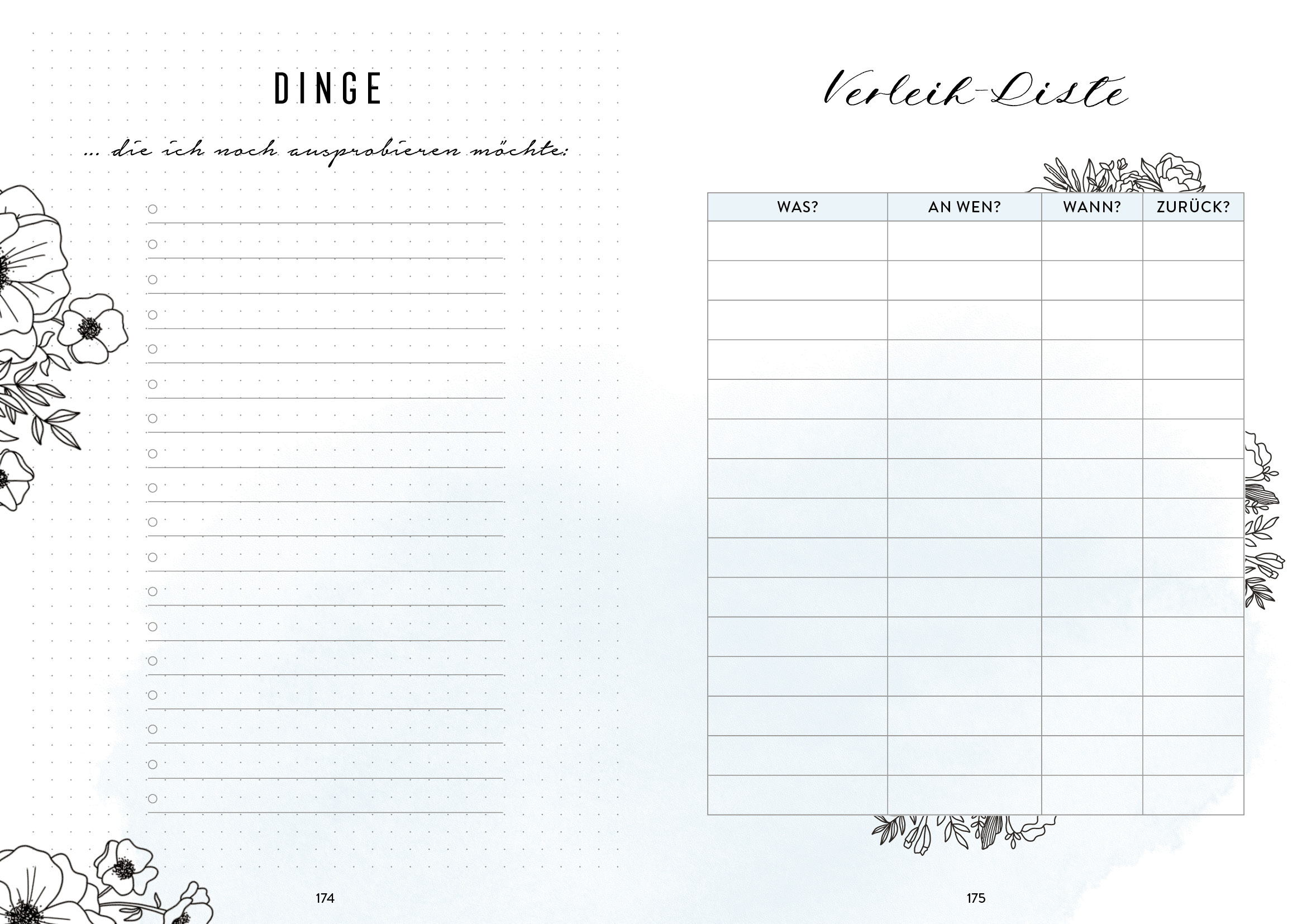| Schlagworte | Bullet journaling • Bullet-Methode • Checklisten • Einkaufslisten • Eintragebuch • Eintrageseiten • Folierung • Future Log • Gestalten • Gewohnheitstracker • Index • Kreativ • Leseband • Listen • Metall-Folienprägung • nur eintragen • Pastell • Planer • Punkteraster • Strukturpapier • Tagebuch • Taschenkalender • to do • Tracker • vorgestaltet • watercolor • Wochenpläne • Wochenübersichten |