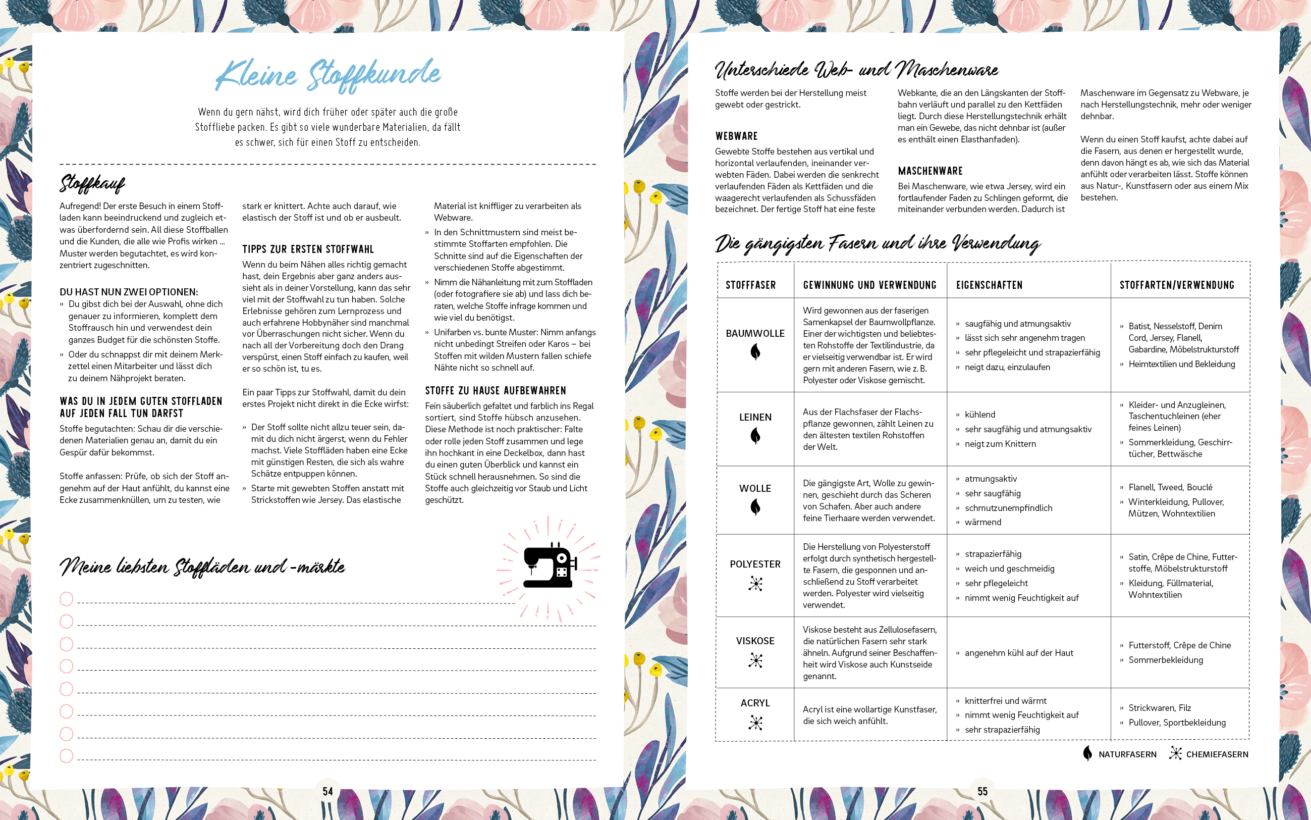 Planer zum Ausfüllen, Einkleben und Sammeln von 50 Projekten inkl. Stoffkunde, Pflegehinweisen und mehr