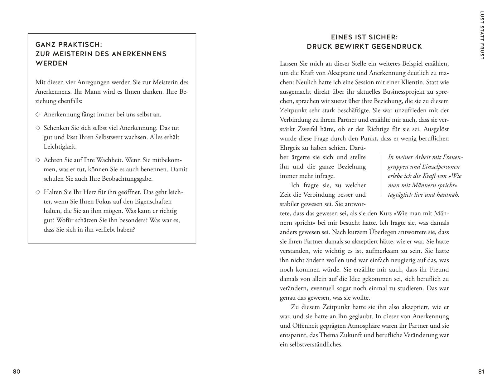 So steckt dieses Buch voller Anregungen und Tipps, Fragen und Antworten, die zum Reflektieren, Umdenken und neu Handeln einladen. Denn zu lernen, wie man am besten mit Männern spricht, ist eine äußerst lohnende Kunst, die Frauen und Männer wieder glücklich machen kann - füreinander, statt gegeneinander, klar, fair und auf Augenhöhe.