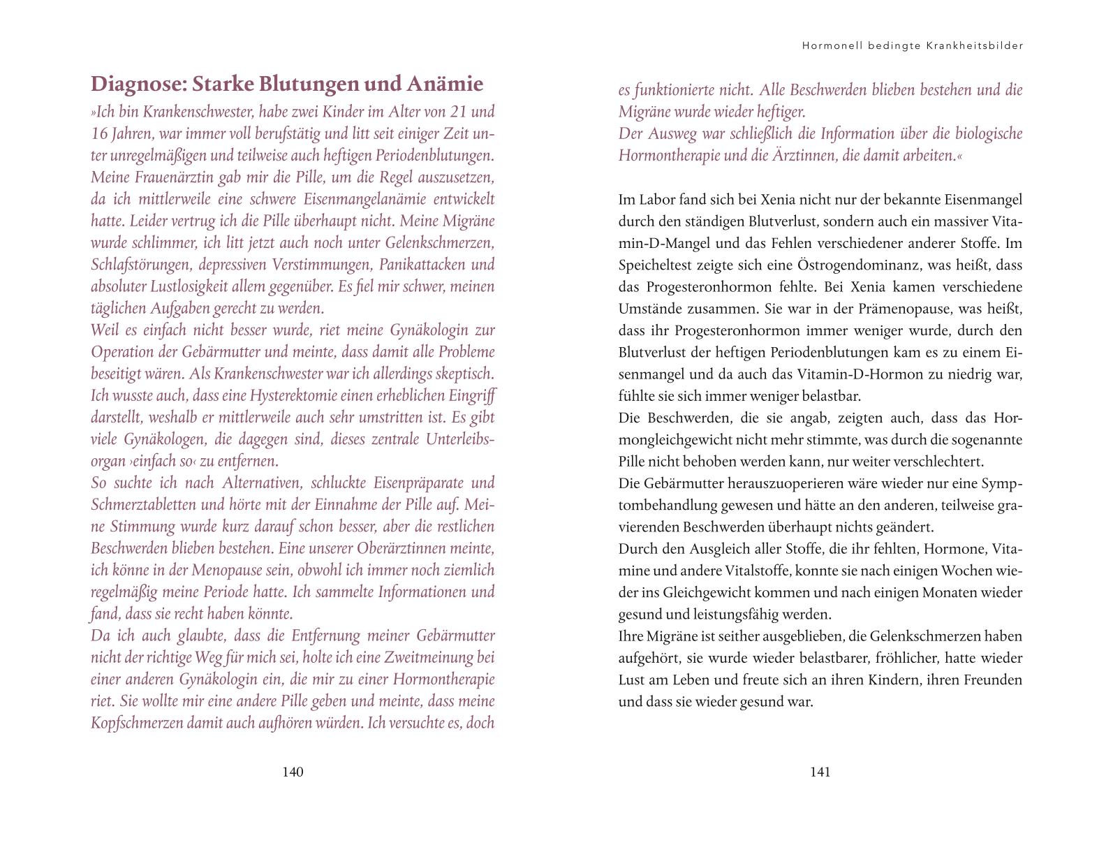 Die Autorin zeigt anhand spannender Fälle aus ihrer Praxis und auf Basis eigener Erfahrungen, dass hinter Erkrankungen häufig ein gestörtes Gleichgewicht von Geschlechtshormonen und Vitalstoffen steckt, und sie erklärt, wie sich mit ganzheitlicher biologischer Hormontherapie und Vitalstoffgaben gute Heilerfolge erzielen lassen. Migräne, Gelenk- und Muskelschmerzen, Herzprobleme, Depressionen und viele andere Beschwerden mehr lassen sich so therapieren und beginnende Autoimmunerkrankungen ausbremsen.