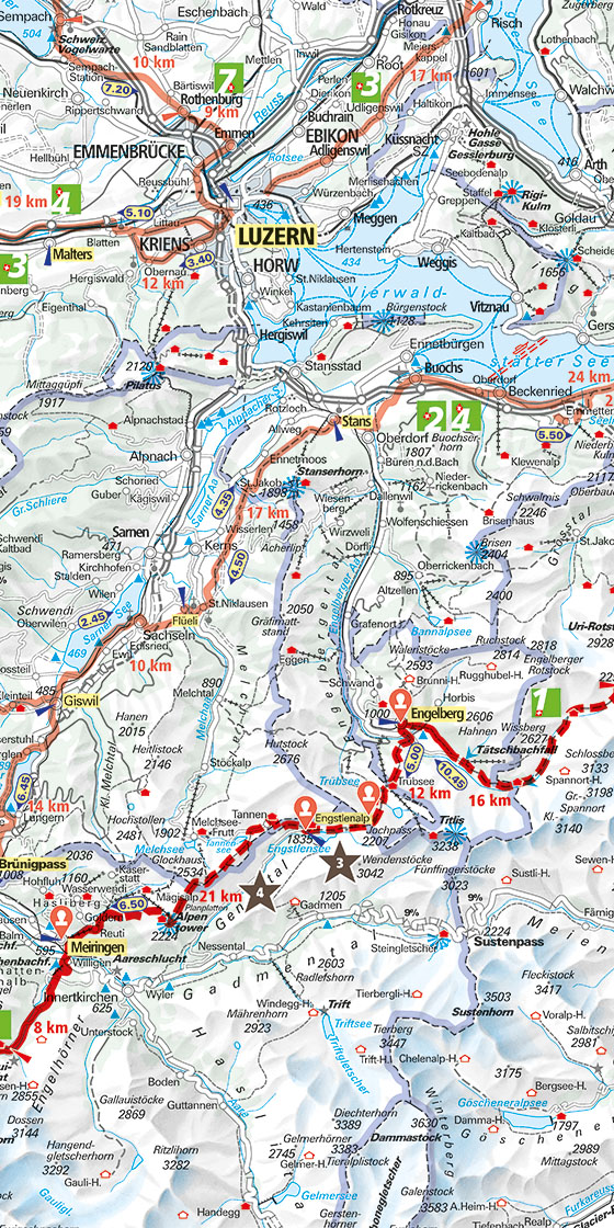 Fernwanderwege Schweiz, Wanderkarte 1:301 000