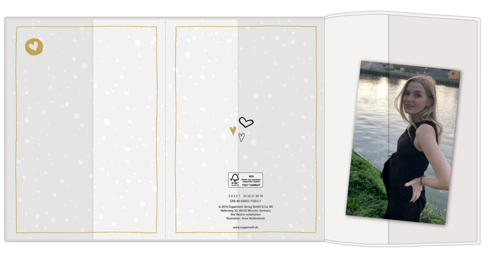 Wunderschöne und praktische Mutterpasshülle. Der Klarsicht-Schutzumschlag ist besonders strapazierfähig und hat eine Tasche zum Aufbewahren von Ultraschallbildern u.v.m. Mit schimmernder Goldfolie auf dem Einleger.