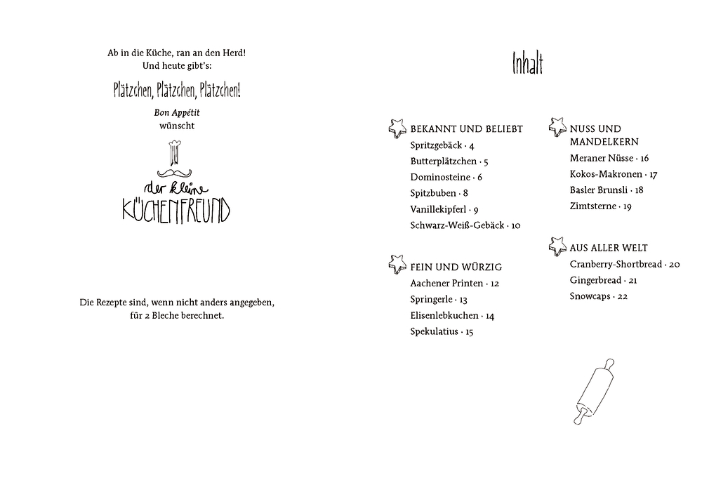 Wenn es draußen früh dunkel wird und alle sich nach Süßem sehnen, dann ist es endlich so weit: Die Plätzchen kommen. Der kleine Küchenfreund versammelt beliebte Klassiker der Weihnachtsbäckerei und wünscht fröhliches Naschen.