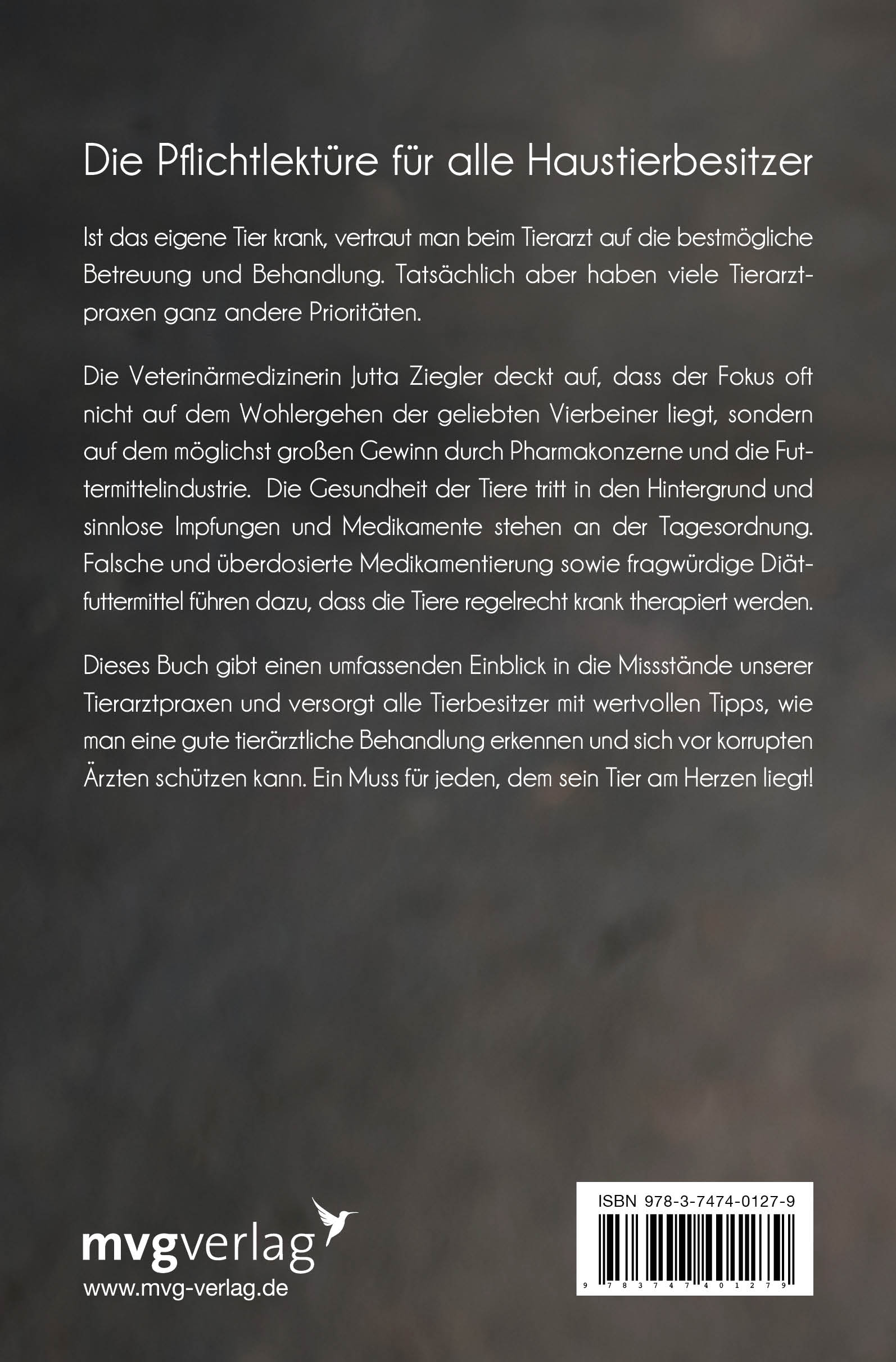 Tierärzte sind dazu da, das Leben der geliebten Vierbeiner zu sichern und das Wohlergehen medizinisch zu gewährleisten. Die Veterinärmedizinerin Jutta Ziegler deckt auf, dass dem in vielen Tierarztpraxen schockierender Weise nicht so ist. Der Fokus liegt auf möglichst viel Gewinn durch die Pharmakonzerne und die Futtermittelindustrie. Sinnlose Impfungen, unnötige Diätfutter und unzählige Medikamente stehen auf der Tagesordnung. Gesundheit und Pflege treten in den Hintergrund. Eine Katastrophe für jeden Tierbesitzer!