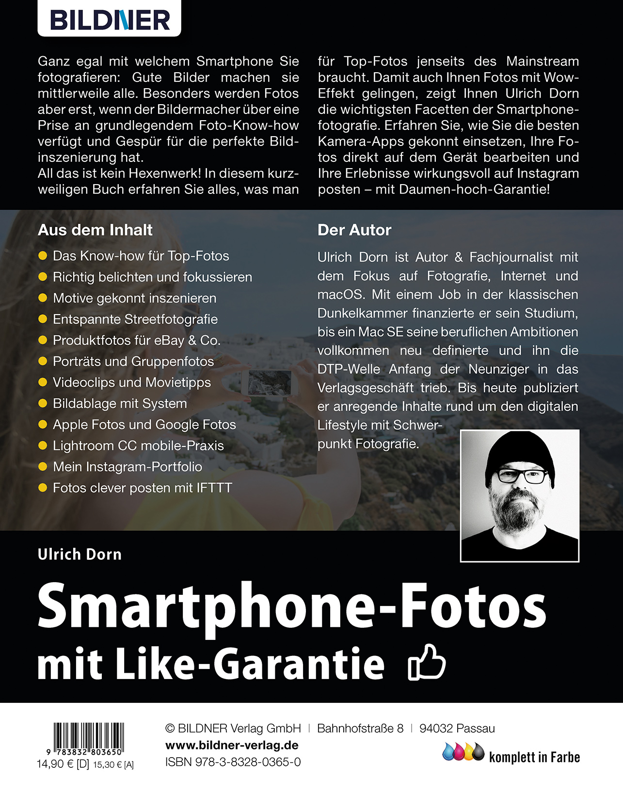 All das ist kein Hexenwerk! In diesem kurzweiligen Buch erfahren Sie alles, was man für Top-Fotos jenseits des Mainstream braucht. Damit auch Ihnen Fotos mit Wow-Effekt gelingen, zeigt Ihnen Ulrich Dorn die wichtigsten Facetten der Smartphonefotografie. Erfahren Sie, wie Sie die besten Kamera-Apps gekonnt einsetzen, Ihre Fotos direkt auf dem Gerät bearbeiten und Ihre Erlebnisse wirkungsvoll auf Instagram posten - mit Daumen-hoch-Garantie!