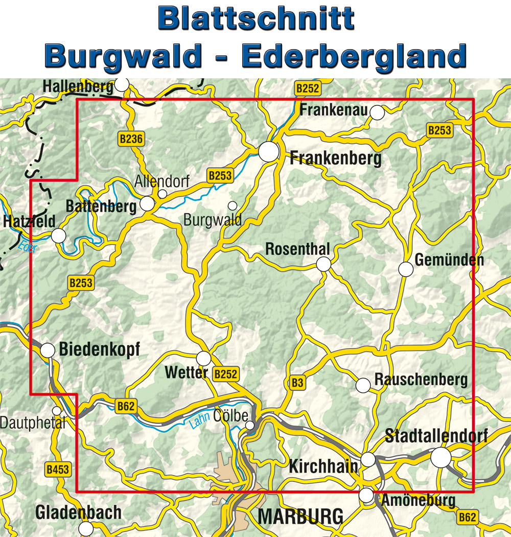 Die neue reiß- und wetterfeste Rad- und Wanderkarte "Burgwald - Ederbergland" stellt die märchenhafte Wanderregion von Battenberg über Frankenberg bis Gemünden und von Biedenkopf über Marburg bis Stadtallendorf übersichtlich vor.