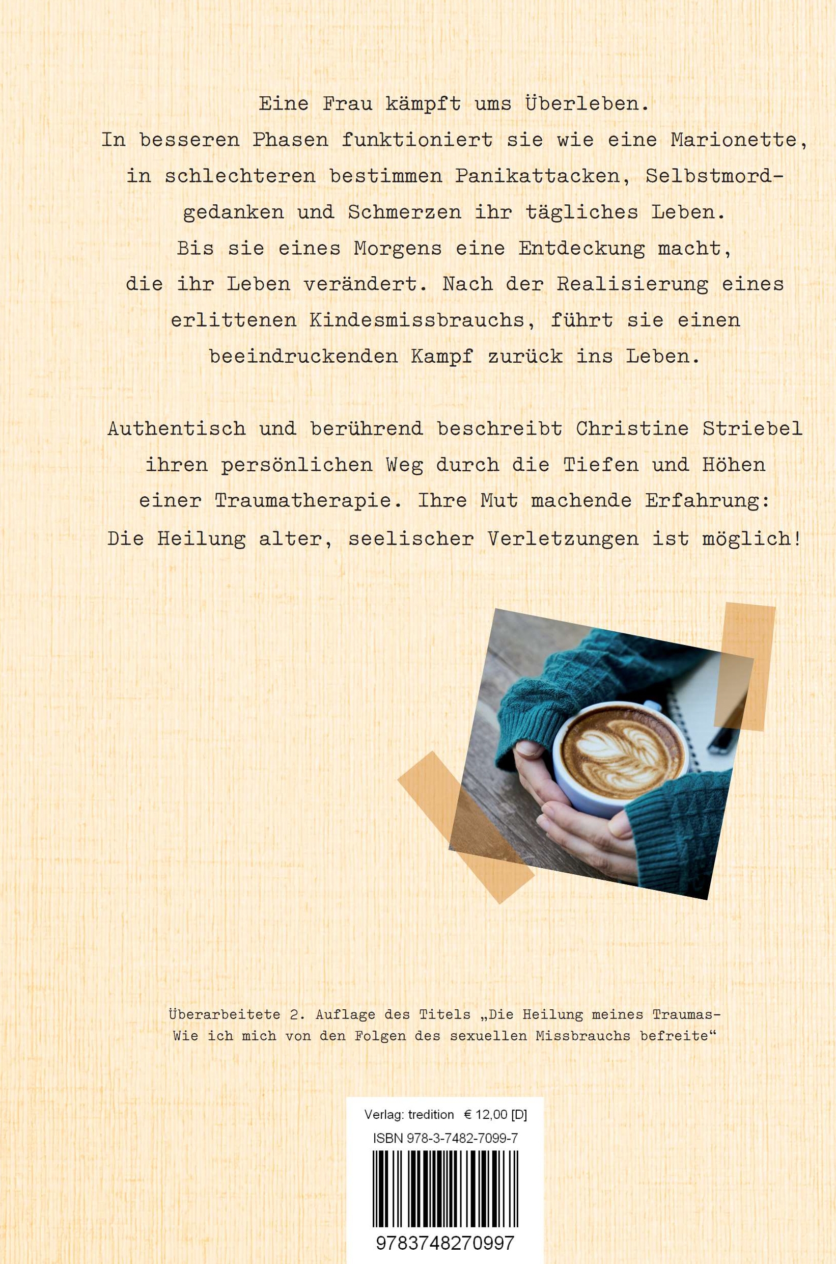 In ihrer autobiografischen Erzählung verzichtet Christine Striebel auf Schilderungen des Missbrauchs. Stattdessen lässt sie uns Schritt für Schritt ihre Therapie begleiten: Wir begegnen Ängsten, Zweifeln und Rückschlägen - aber auch einem Team von inneren Helfern, einem sicheren Ort und der unbändigen Kraft der Fantasie.
