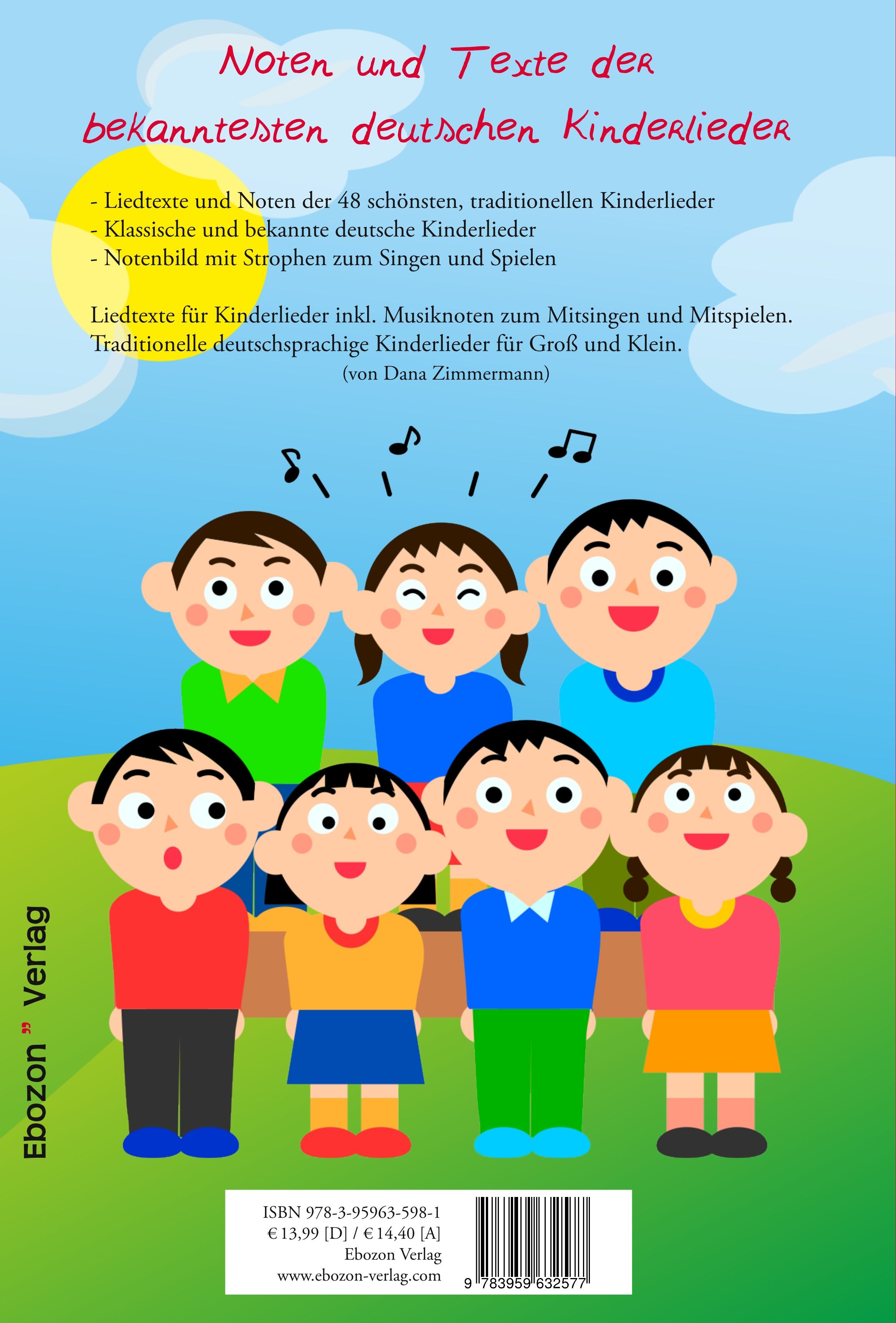 Inhaltsbeschreibung- Liedtexte und Noten für die 48 schönsten, traditionellen Kinderlieder - Klassische und bekannte deutsche Kinderlieder - Notenbild mit Strophen zum Singen und SpielenLiedtexte für Kinderlieder inkl. Musiknoten zum Mitsingen und Mitspielen. Traditionelle deutschsprachige Kinderlieder für Groß und Klein.