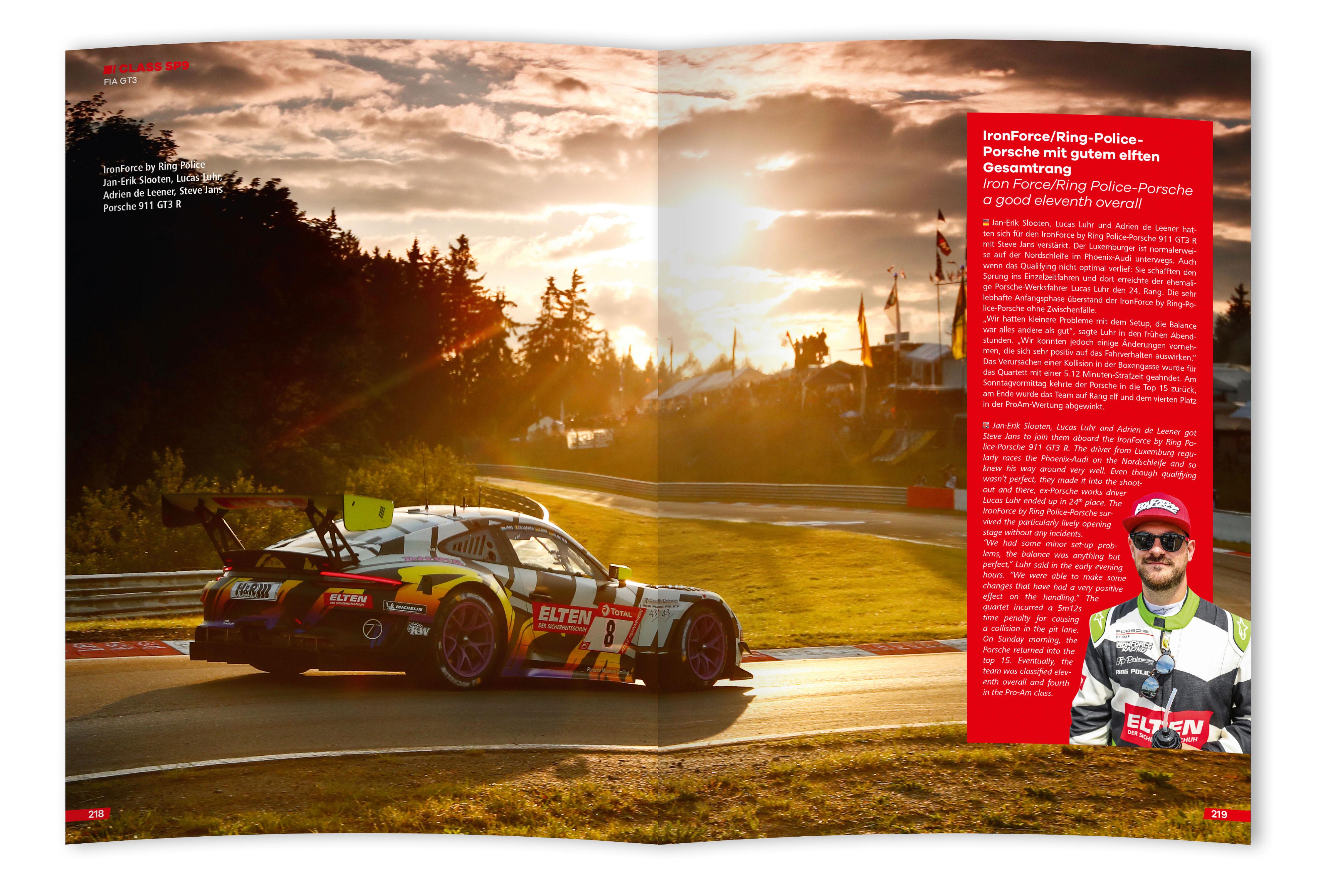 Neben dem Kampf um den prestigeträchtigen Gesamtsieg beleuchtet das Jahrbuch in gewohnter Manier natürlich auch die einzelnen Klassen und berichtet über Rahmenrennen, Autogrammstunden und Heldentaten. Nicht fehlen dürfen die zahlreichen Rundentabellen und der gewohnt große Statistik-Teil. Auch das 19. offizielle 24h-Jahrbuch Nürburgring ist ein Muss für jeden Motorsport-Fan.