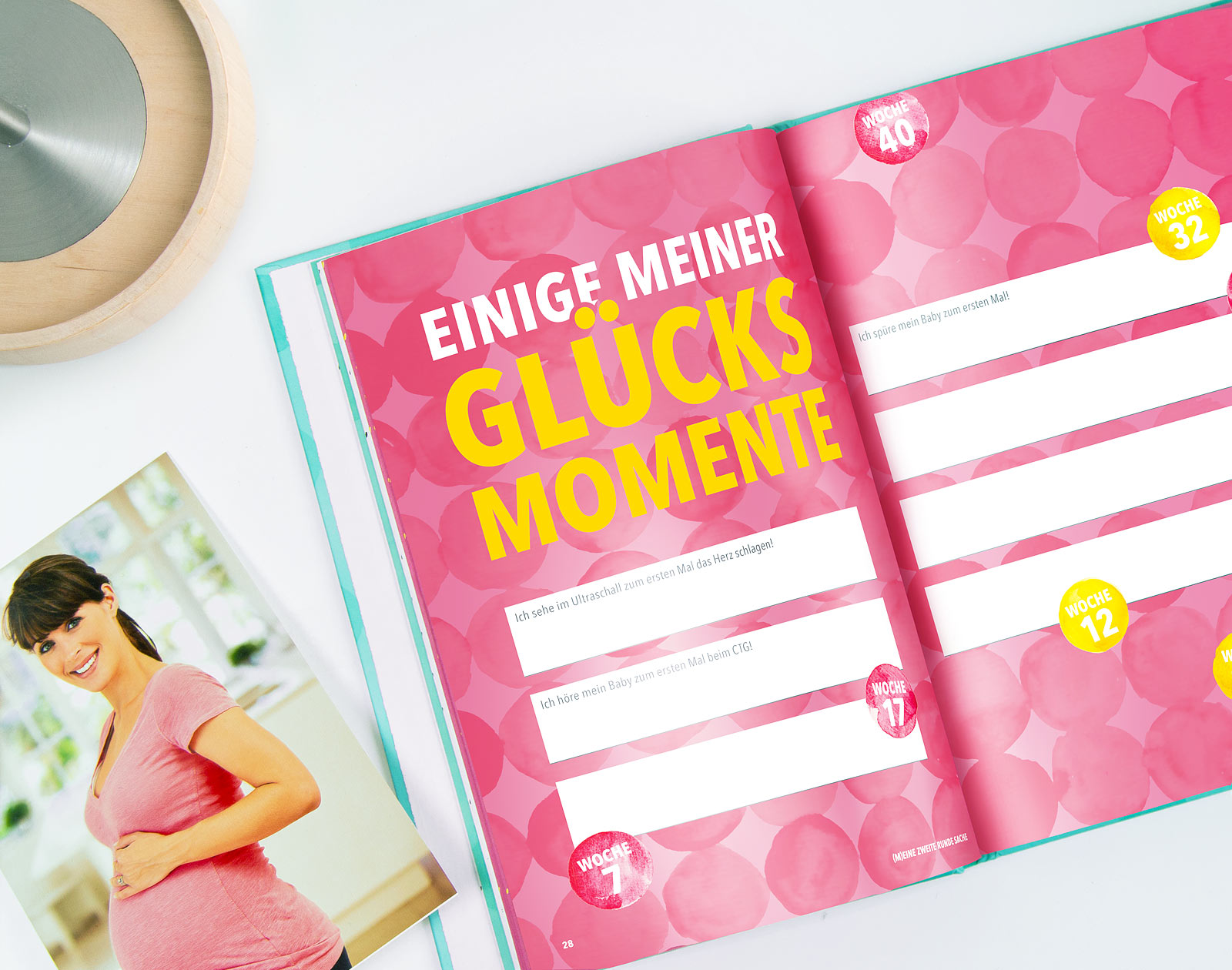 - Dazwischen ist immer wieder Platz für Ultraschallbilder, Fotos aus der Schwangerschaft und erste Babybilder