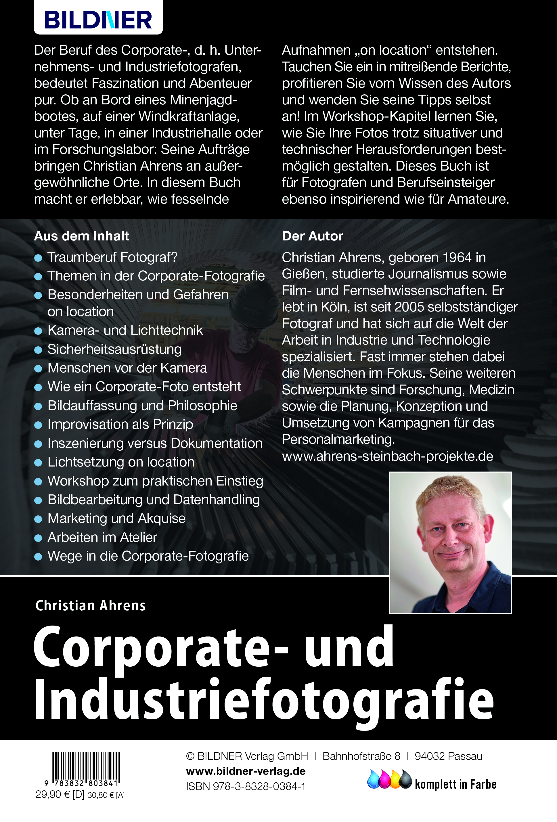 Der Beruf des Corporate-, d. h. Industrie- und Unternehmensfotografen, bedeutet Faszination und Abenteuer pur. Ob an Bord eines Minenjagdbootes, auf einer Windkraftanlage, unter Tage, in einer Industriehalle oder im Forschungslabor: Seine Aufträge bringen Christian Ahrens an außergewöhnliche Orte. In diesem Buch macht er erlebbar, wie fesselnde Aufnahmen "on location" entstehen. Tauchen Sie ein in seine mitreißenden Erfahrungsberichte, profitieren Sie vom Wissen des Autors und wenden Sie seine Tipps selbst an! Im Workshop-Kapitel lernen Sie, wie Sie Ihre Corporate-Fotos trotz aller technischer und situativer Herausforderungen auf bestmögliche Wirksamkeit hin gestalten. Dieses Buch ist für Fotografen und Berufseinsteiger ebenso inspirierend wie für Amateure.