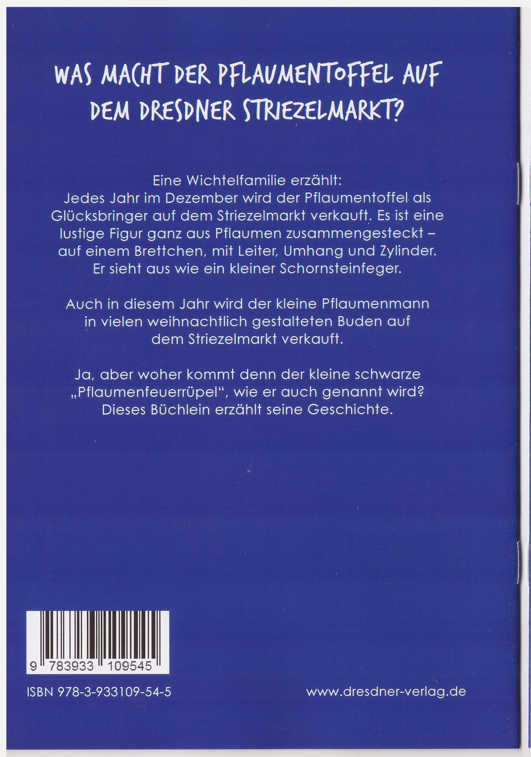 Ledes Jahr im Dezember wird der Pflaumentoffel als Glücksbringer auf dem Striezelmarkt verkauft. Es ist eine lustige Figur ganz aus Pflaumen zusammengesteckt auf einem Brettchen, mit Leiter, Umhang und Zylinder. Er sieht aus wie ein kleiner Schornsteinfeger.