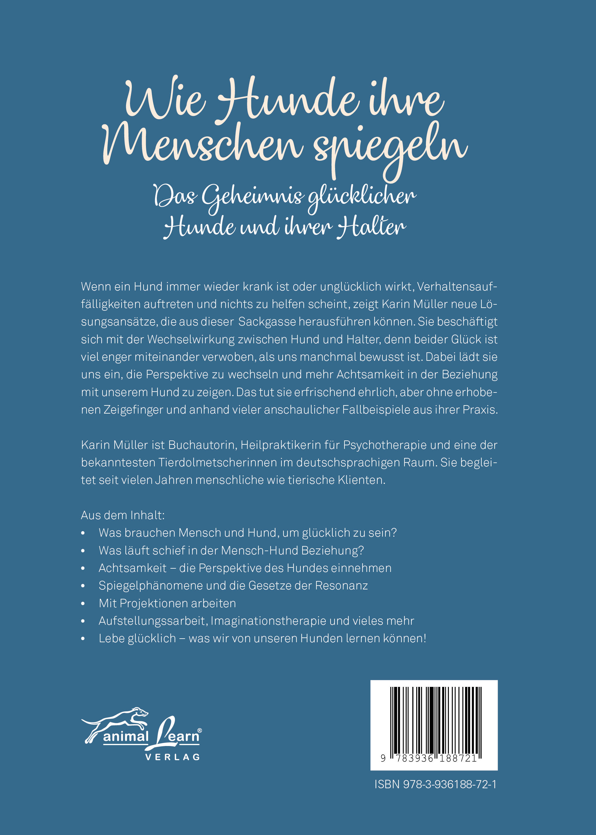 | Schlagworte | Hunde • Hundehaltung • Hundetraining • Imaginationstherapie • Kinesiologie • Spiegelphänomene • Tierkommunikation |