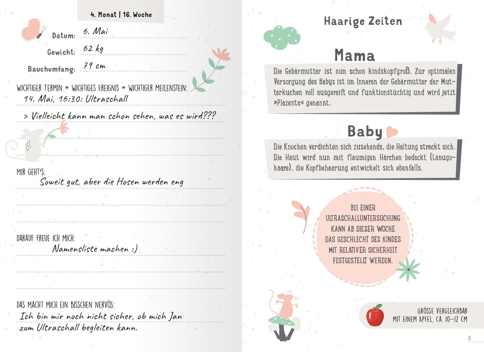 Die Schwangerschaft steckt voller Zauber. Damit du für immer eine Erinnerung an diese wunderschöne Zeit hast, findest du in diesem Schwangerschaftstagebuch viel Platz zum Festhalten aller großen und kleinen Momente sowie zum Einkleben von Babybauchfotos und Ultraschallbildern. Ein Schwangerschaftskalender begleitet dich zudem durch deine Schwangerschaft und liefert Infos zur jeweiligen Schwangerschaftswoche, sowohl was mit dir als auch mit dem Baby passiert.