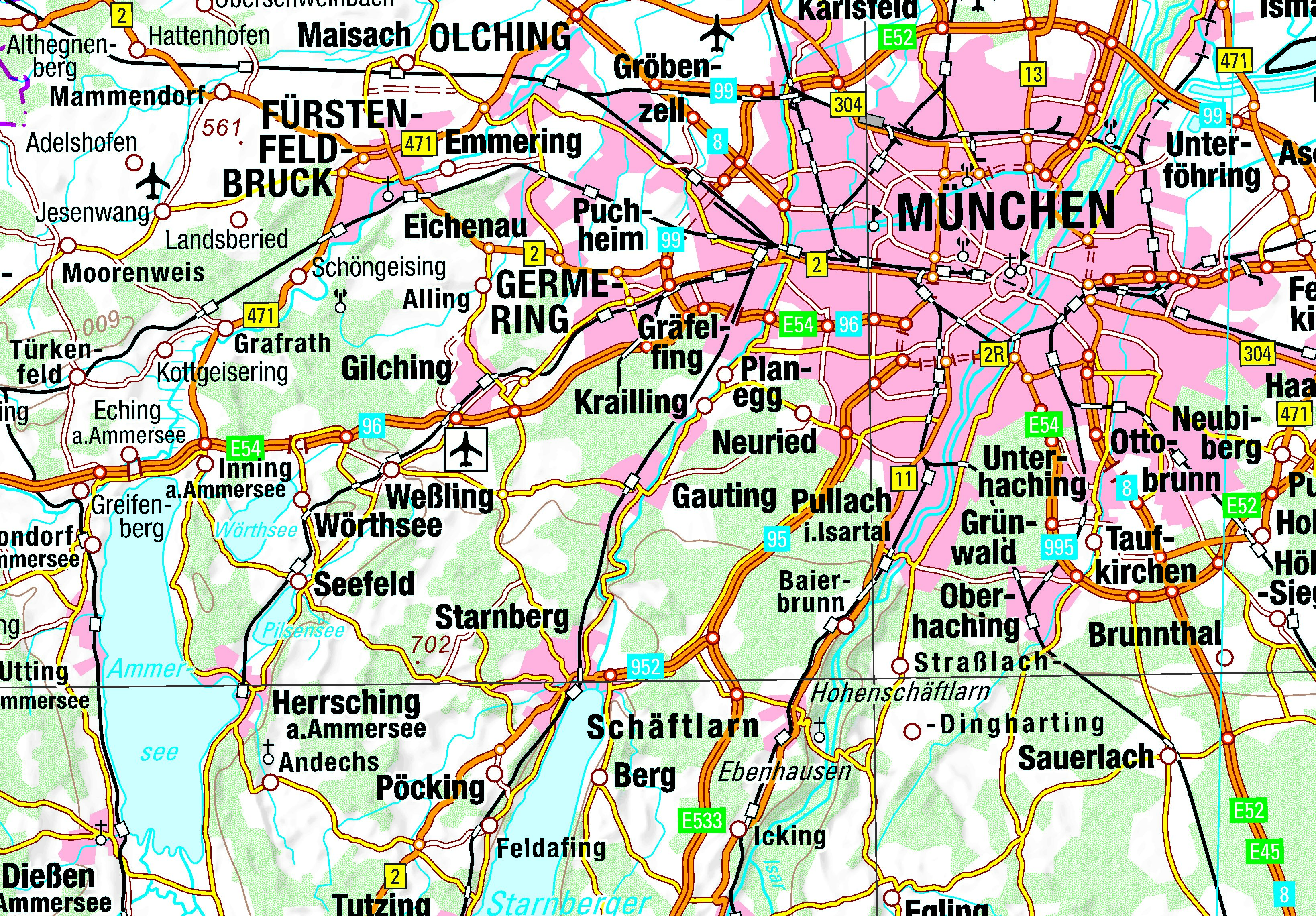 Die zweiseitig bedruckte Karte mit einer neuen, modernen Kartengraphik zeigt auf einem Blatt ganz Süddeutschland. Dabei werden u.a. Siedlungen, Verkehrswege, Gewässernetz, Höhenschichten, Vegetation und die administrativen Grenzen dargestellt.