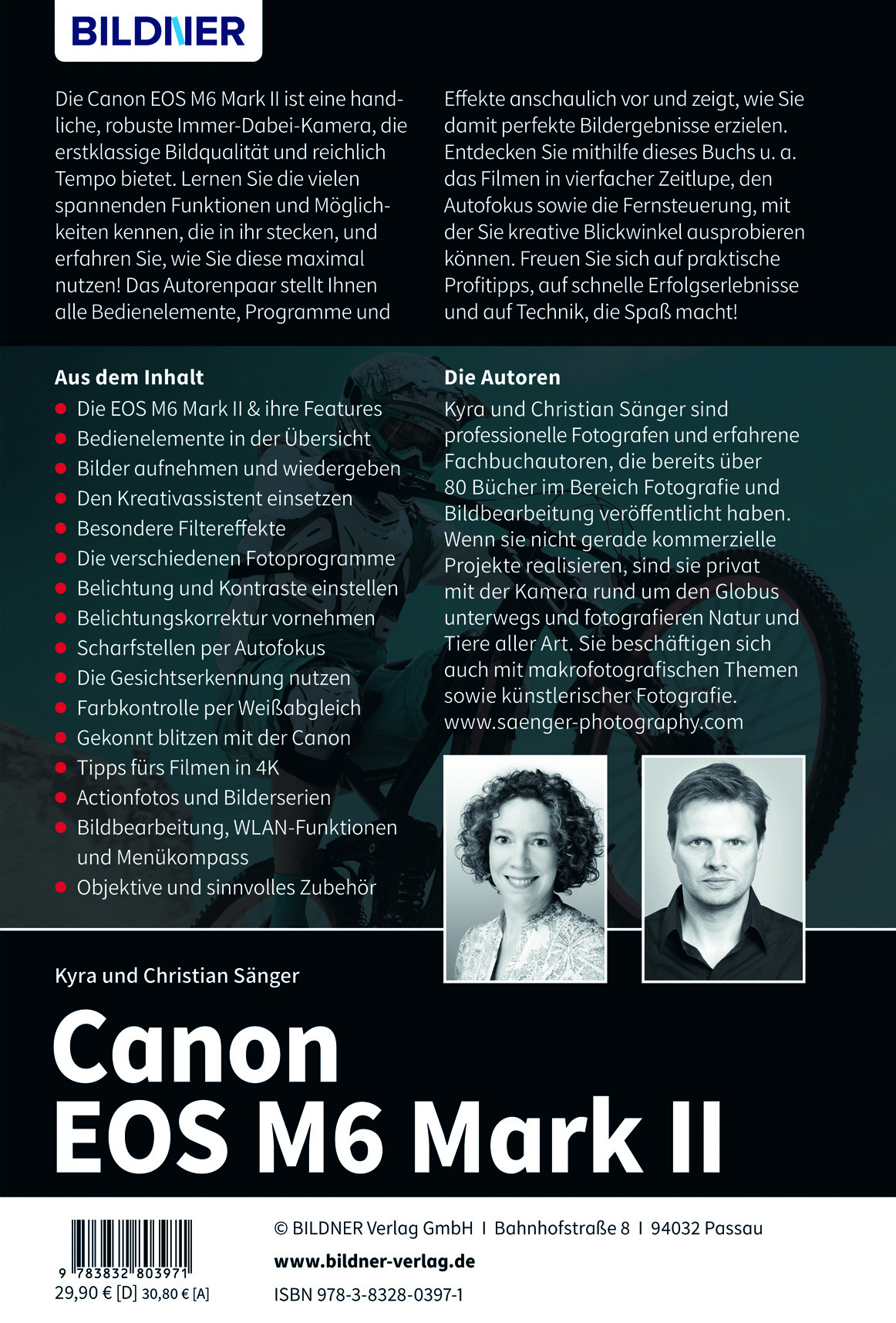 lt;p>Die Canon EOS M6 Mark II ist eine robuste Immer-Dabei-Kamera, die erstklassige Bildqualität und reichlich Tempo bietet. Lernen Sie die vielen spannenden Funktionen und Möglichkeiten kennen, die in ihr stecken, und erfahren Sie, wie Sie diese maximal nutzen! Das Autorenpaar stellt Ihnen alle Bedienelemente, Programme und Effekte anschaulich vor und zeigt, wie Sie damit perfekte Bildergebnisse erzielen. Entdecken Sie mithilfe dieses Buchs u. a. das Filmen in Zeitlupe und die Fernsteuerung, mit der Sie kreative Blickwinkel ausprobieren können. Freuen Sie sich auf praktische Profitipps, auf schnelle Erfolgserlebnisse und auf Technik, die Spaß macht!