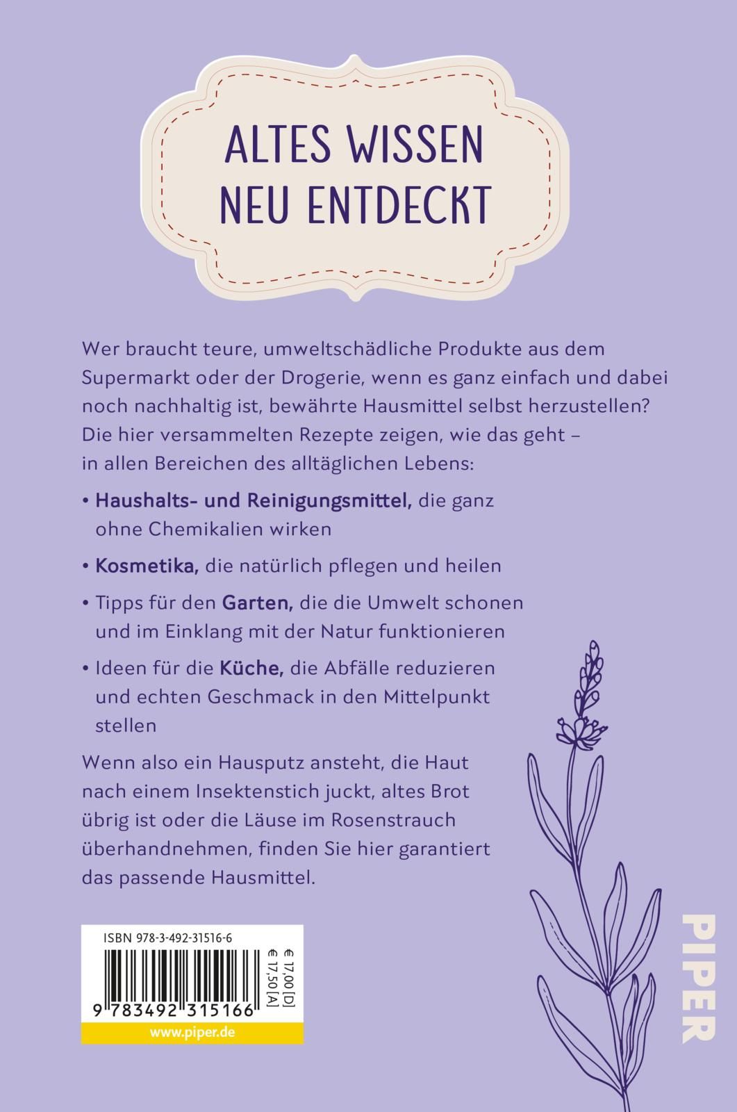 Unsere Warenwelt wird immer unübersichtlicher: Es gibt giftige Spezial-Reinigungsmittel für jede Gelegenheit, hunderte Sorten Duschgel und ständig neue Medikamente. Da steigt das Bedürfnis nach der guten alten Zeit. Mit einfachen Hausmitteln ließ sich früher jedes Problem lösen - und sie funktionieren auch heute noch! Selbst gemachtes Waschmittel mit Zitrone hilft gegen Flecken, die richtige Lagerung von Vorräten sorgt für längere Haltbarkeit. Im Garten macht gemischter Anbau viele Schädlingsvernichter überflüssig und aus bestimmten Kräutern lässt sich ganz einfach eine Notfallapotheke machen. Katrin Tempel liefert zahlreiche Tipps und Rezepte, mit denen wir teure Supermarktprodukte vermeiden und so gesünder und nachhaltiger leben können.