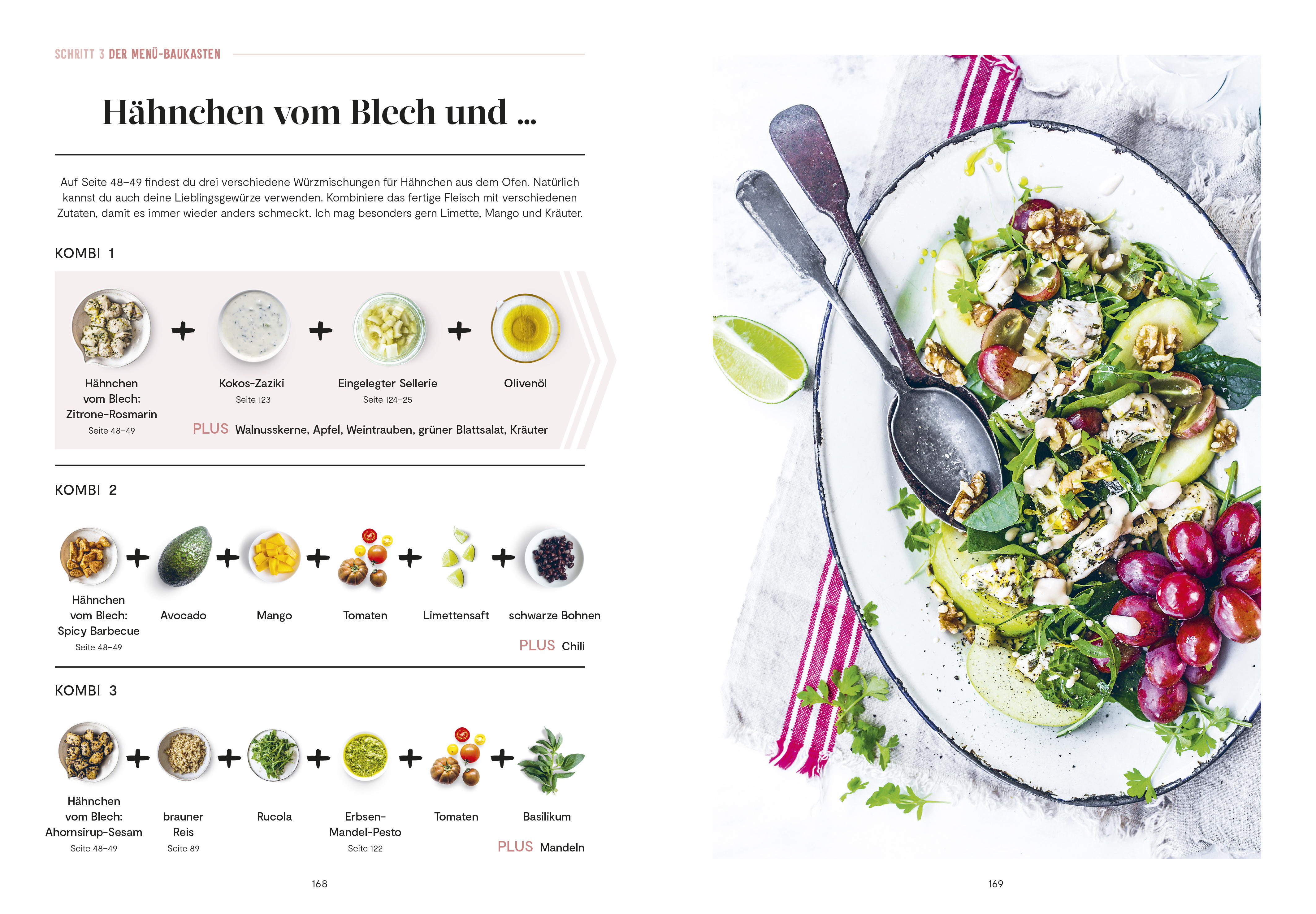 Weniger Koch-Stress, mehr Genuss - gesund kochen und Meal Prep ist die Traum-Kombination! Denn ein gutes Körpergefühl hängt von einer gesunden Ernährung ab. Zu Hause kochen oder idealerweise Essen für die Woche vorzubereiten spart Zeit und ist das A und O für einen schlanken und gesunden Lifestyle. Die australische Food-Bloggerin Sally O'Neil hat einen genialen 3-Schritte-Plan parat, wie du mit wenig Aufwand einen Vorrat für die ganze Woche zubereitest: - Wähle zunächst deine Basics aus: proteinreiche Grundlagen wie ofengebackener Lachs, Blumenkohl-Steaks oder Hähnchen vom Blech treffen auf tolle Beilagen wie Hummus-Variationen, nussiges Paleo-Brot oder eingelegtes Gemüse. - Lagere alles portionsweise in deinem Kühl- und Vorratsschrank. - Kombiniere alles immer wieder neu miteinander. Mit diesen abwechslungsreichen Rezeptideen ergeben sich über 75 Varianten - immer frisch, lecker und gesund, aber niemals langweilig. Ob süß oder herzhaft, ob to go fürs Büro oder als schnelles Abendessen, ob Hauptmahlzeit oder Snack: Mit diesem Meal-Prep-Planer sparst du Zeit, vermeidest Abfall und sorgst für eine ausgewogene Ernährung. Die Frage "Was esse ich heute?" ist ab jetzt immer schnell beantwortet.