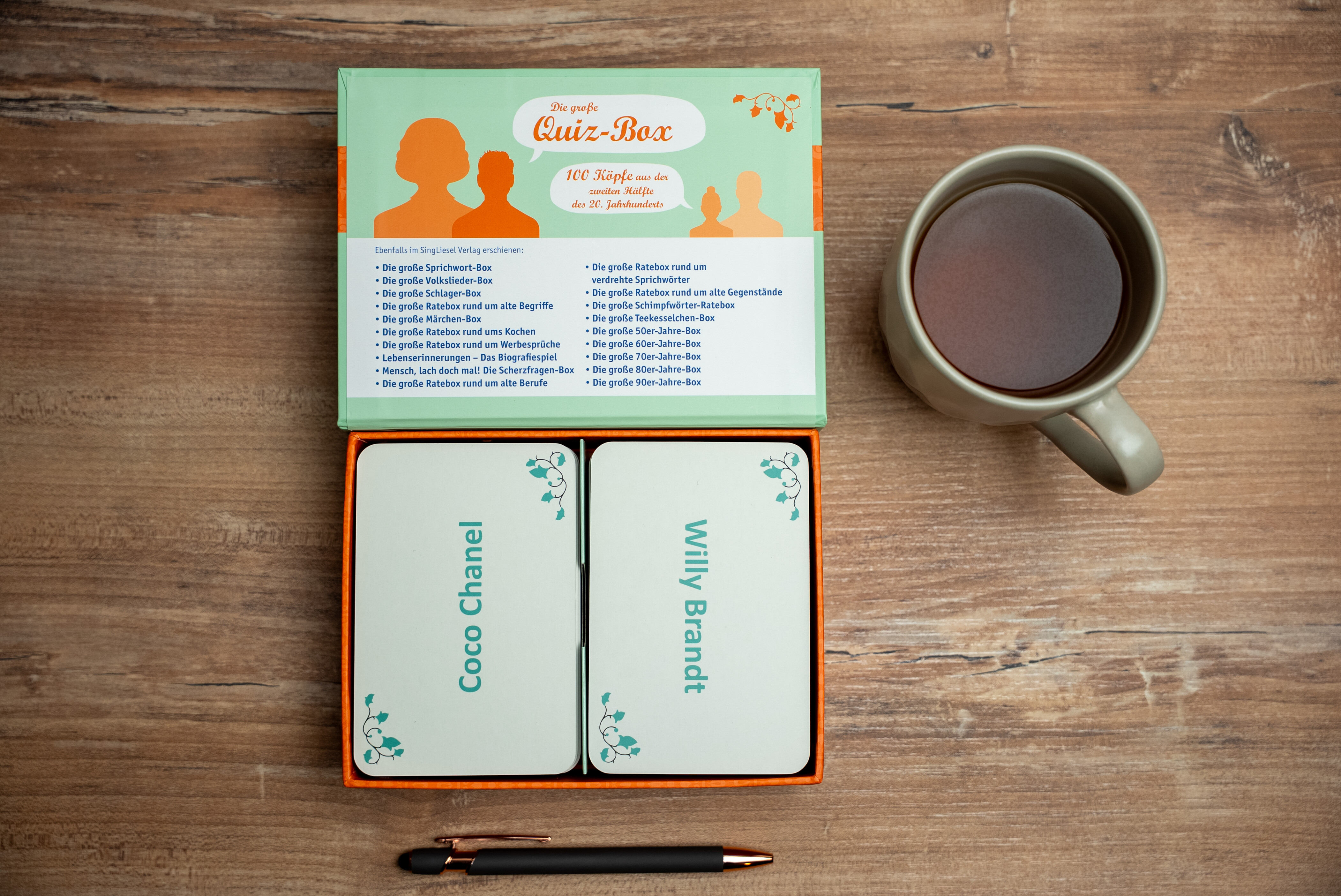 | Schlagworte | Alzheimer • Beschäftigung • Biografiearbeit • Biografiespiel • Demenz • demenz aktivierung • Demenz Aktivierungen • Demenz Beschäftigung • Demenz Beschäftigungen • Demenz Betreuung • Demenz Biografie • Demenz Biografiespiel • Demenz Erinnern • Demenz Geschenk • Demenz Geschenkidee • Demenz Gesellschaftsspiel • Demenz Gesellschaftsspiele • Demenz Kartenspiel • Demenz Kurzaktivierung • Demenz Pflege • Demenz Pflegeheim • Demenz Quiz • Demenz Quizbox • Demenz Quizspiel • Demenz Quiz-Spiel • Demenz Quizspiele • Demenz Ratebox • Demenz Rate-Box • Demenz Rateboxen • Demenz Rate-Boxen • Demenz Ratequiz • Demenz Rate-Quiz • Demenz Spiel • Demenz Spiele • demenz übungen • Gedächtnistraining • Gedächtnistraining Aktivierung • Gedächtnistraining Aktivierungen • Gedächtnistraining Altenpflege • Gedächtnistraining Altersheim • Gedächtnistraining Beschäftigung • Gedächtnistraining Beschäftigungen • Gedächtnistraining Betreuung • Gedächtnistraining Biografie • Gedächtnistraining Biografiespiel • Gedächtnistraining Erinnern • Gedächtnistraining Erinnerungen • Gedächtnistraining Geschenkidee • Gedächtnistraining Gesellschaftsspiel • Gedächtnistraining Gesellschaftsspiele • Gedächtnistraining Kurzaktivierung • Gedächtnistraining Kurzaktivierungen • Gedächtnistraining Pflegeheim • Gedächtnistraining Quizbox • Gedächtnistraining Ratebox • Gedächtnistraining Rate-Box • Gedächtnistraining Rateboxen • Gedächtnistraining Ratekarten • Gedächtnistraining Spiel • gedächtnistraining spiele • Gedächtnistraining Spielidee • Gedächtnistraining Tagespflege • Gedächtnistraining Übung • Gedächtnistraining Übungen • Geschenk • Geschenk Demenz • Geschenk Oma Opa • Gesellschaftsspiel • Großeltern • Kartenspiel • Lebenserinnerungen • oma geschenk • Opa Geschenk • Quiz • Ratespiel • Rätsel • Rentner • Senior • Senioren • Senioren Aktivierung • Senioren Aktivierungen • senioren beschäftigung • Senioren Beschäftigungen • Senioren Betreuung • Senioren Biografie • Senioren Biografiespiel • Senioren Geschenk • Senioren Geschenkidee • Senioren Gesellschaftsspiel • Senioren Gesellschaftsspiele • Senioren Kartenspiel • Senioren Kartenspiele • Senioren Kurzaktivierung • Senioren Kurzaktivierungen • Senioren Pflege • Senioren Quiz • Senioren Quizspiel • Senioren Quiz-Spiel • Senioren Quizspiele • Senioren Ratebox • Senioren Rate-Box • Senioren Ratekarten • Senioren Ratequiz • Senioren Rate-Quiz • Senioren Rätsel • Senioren Spiel • Senioren Spiele • Senioren Spielidee • Senioren Übungen • Spiel • Weihnachten • Weihnachtsgeschenk |