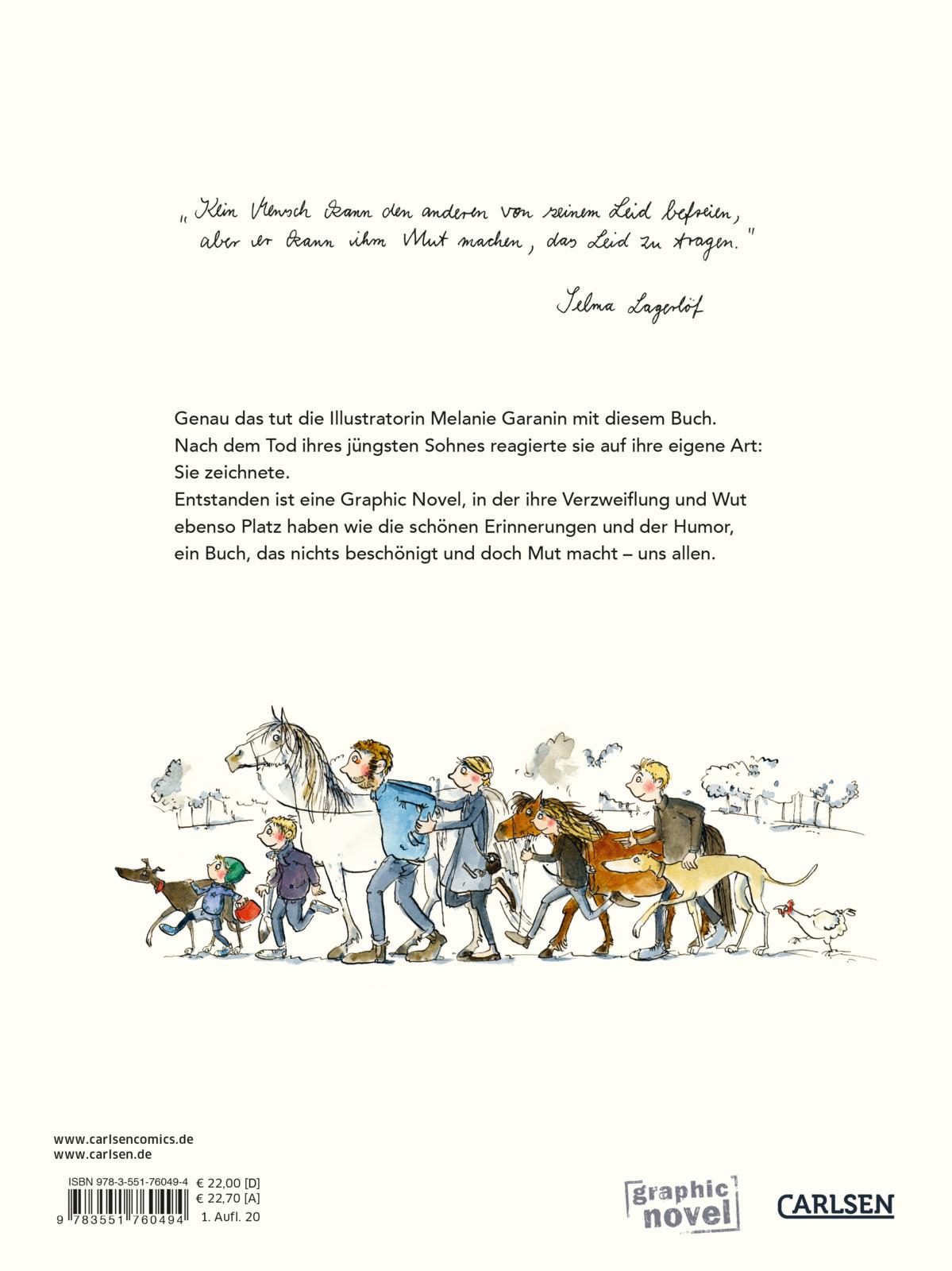 Genau das tut die Kinderbuchillustratorin Melanie Garanin mit diesem Buch. Nach dem tragischen Tod ihres jüngsten Sohnes reagierte sie auf ihre eigene Art: Sie zeichnete. Entstanden ist eine Graphic Novel in der ihre Verzweifelung und Wut ebenso Platz haben wie die schönen Erinnerungen und der Humor, ein Buch, das nichts beschönigt und doch Mut macht - uns allen.