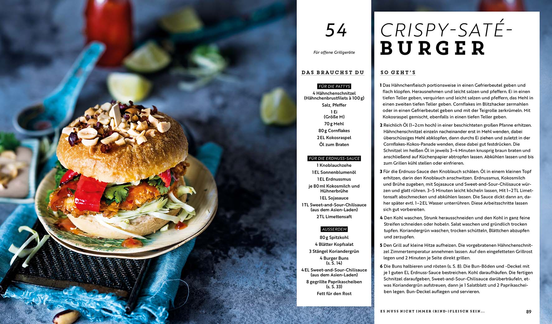 Burger gehen immer! Aber nur, wenn sie richtig gut sind! Und am besten schmecken sie, wenn sie direkt vom Grill kommen. Bei den 50 innovativen Burger-Kreationen für den Grill ist für jeden Geschmack etwas dabei - mit Fleisch, Fisch, vegetarisch und vegan. Klassische Burger wie Cheese-Burger oder Chicken Burger sind ebenso vertreten wie ausgefallene Variationen: Oriental Burger mit Lamm, Veggie Burger mit Rote-Bete-Patty oder ein Auberginen-Burger mit Ziegenkäse. Dazu gibt es Grundrezepte für Burger Buns, hausgemachte Saucen, Chutneys, Salate und mehr. Egal, ob klassisch, exotisch oder international, ob mit Fleisch, vegetarisch oder ganz ohne Brot - hier findet wirklich jeder Fast-Food-Liebhaber das passende Rezept!