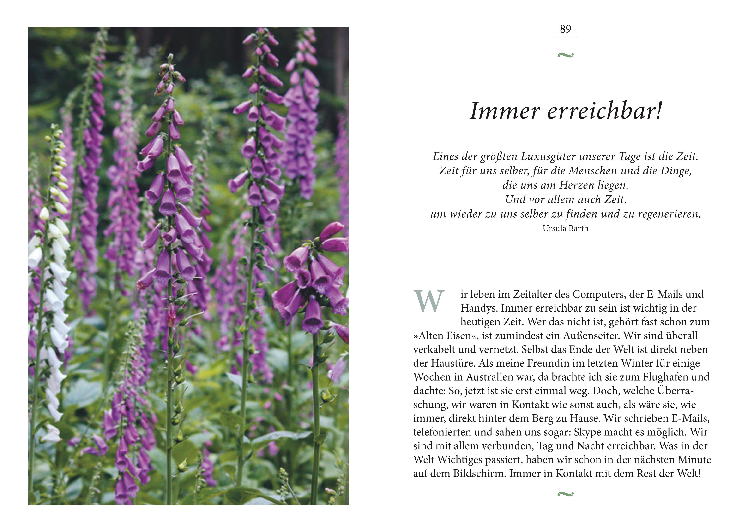 Die klugen, philosophischen und wissensreichen Texte ziehen den Leser in Verbindung mit den stimmungsvollen Fotos und anregenden Zitaten regelrecht in dieses Garten-Schwelgebuch. Man kann es einfach nicht mehr aus der Hand legen. Ein wunderbares Geschenk an sich selbst und für alle Gartenfreunde und Naturbegeisterte.