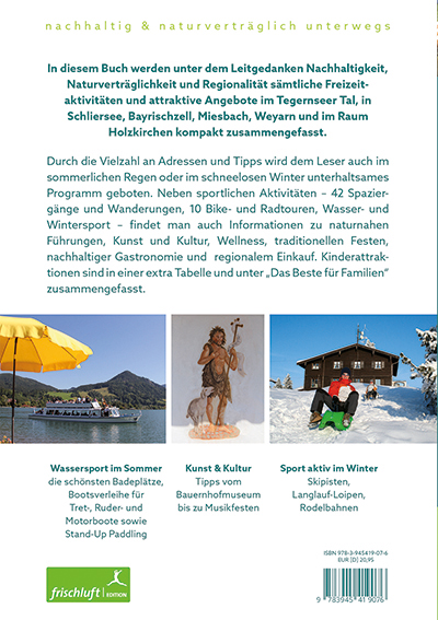 | Schlagworte | Almen • Baden • Badeseen • Bayrischzell • Bergtour • Brauchtum • Brauerei • Dirndlschneiderei • Drechsler • Einkauf • Einkaufsadressen • Einkehrtipps • Feste • Fischbachau • Handwerk • Holzkirchen • Hütten • Kinder • kindertauglich • Kräuterführungen • Kultur • Kunst • Kunsthandwerk • Kursangebote • Langlauf • Lebensmittel • Lehrpfade • nachhaltig • Nachhaltigkeit • Naturnähe • regional • Regionalführer • Rodeln • Sauna • Schliersee • Spaziergang • Tegernsee • Töpferei • Tradition • Wanderung • Wassersport • Wellness • Wintersport • Winterwandern • Wirtshaus |