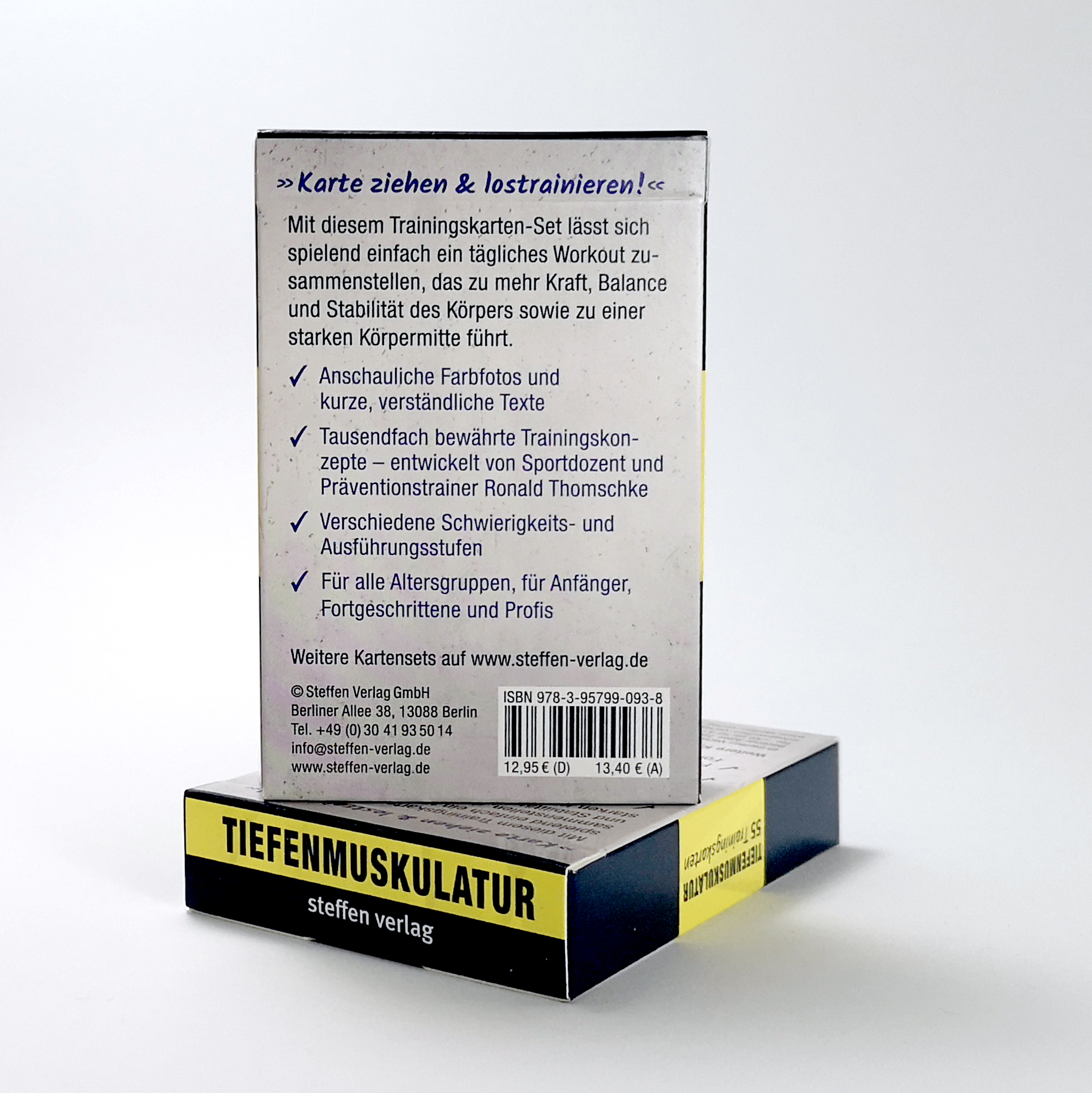 Mit dem Trainingskarten-Set "Tiefenmuskulatur" lässt sich spielend einfach ein tägliches Workout zusammenstellen, das zu mehr Kraft, Balance und Stabilität des Körpers sowie zu einer starken Körpermitte führt. Nur wenige Minuten und Übungen am Tag genügen, um die Körperstabilität und Balancefähigkeit zu verbessern und einen natürlichen Schutz vor Überlastungen im Alltag oder beim Sport zu erhalten.