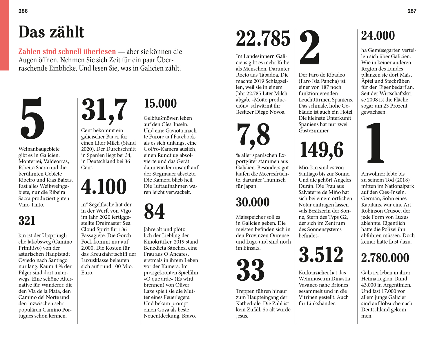 Auf 304 Seiten beschreibt Tobias Büscher Nordspaniens Highlights. Sein Buch begleitet durch Kultur und Natur auf dem Jakobsweg und in Galicien, Stadt und Land, ans Meer und in die Berge. Er führt mitten hinein in den Alltag und das Leben vor Ort. Mit 16 Touren, persönlichen Lieblingsorten, ausgewählten Adressen und besonderen Autorentipps. Das Magazin mit Interviews, Porträts, Features, Reportagen und Fotos schafft eine spürbare Nähe zur Lebenswelt in der Region. 23 Citypläne und Tourenkarten sowie die große separate Reisekarte unterstützen die Orientierung, und als Online-Zugabe gibt‘s aktuelle Reisetipps und News des Autors.