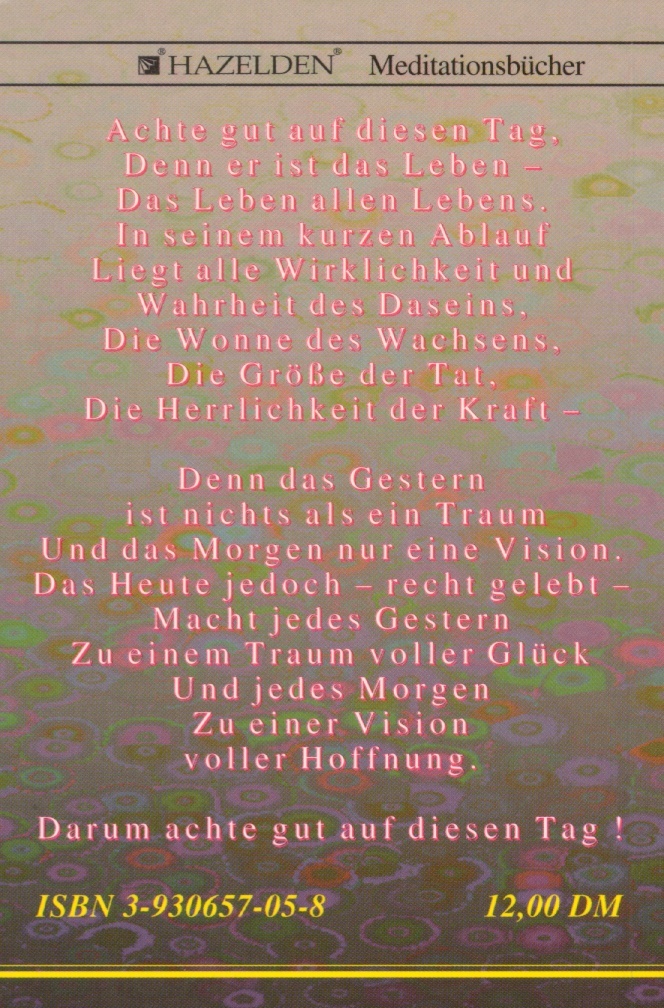 Das 24-Stunden-Buch für jedermann, mit täglichen Meditationen, übersetzt von Heinz Kappes, neuer Einband, früher von EA Deutschland vertrieben.