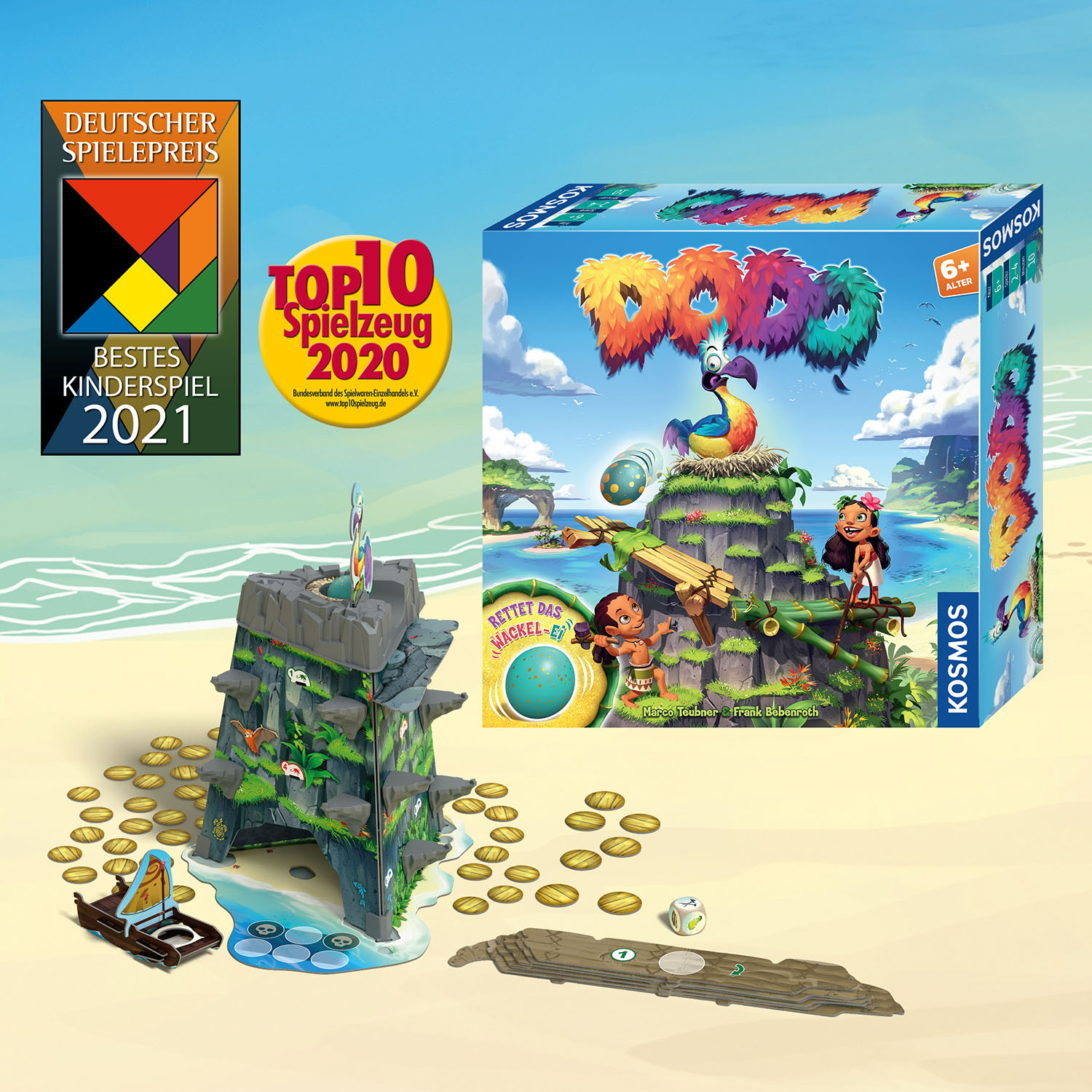 Ausgezeichnet: Gewinner des "Deutschen Spielepreis - Bestes Kinderspiel 2021". Top-Kinderspiel: Prämiert mit dem Siegel "Top 10 Kinderspiel 2020". Tolles Spielmaterial: Das rollende Wackel-Ei für jede Menge Spannung und Action. Der neue Riesen-Spielspaß für die ganze Familie. Kooperatives Spiel: Rettet gemeinsam das Ei des Dodos. Kinderspiel ab 6 Jahren. Mit viel Wackelei rollt das Ei den Berg runter. Lustiges Gesellschaftsspiel, auch klasse als Geschenk. Willkommen im Inselreich Mangalopanesia! Auf dem höchsten Berggipfel hat der Dodo voller Stolz sein Ei gelegt. Nur einen Moment ist er unaufmerksam und schon plumpst es aus dem Nest und rollt mit hohem Tempo den Berg hinab zur Felskante... Schnelligkeit ist in diesem Kinderspiel ab 6 Jahren gefragt! Jetzt müssen alle Spieler zusammenarbeiten, um das kullernde Wackel-Ei sicher an den Fuß des Berges zu bringen. Dazu wird schnell das Baumaterial erwürfelt, Hammer und Nägel gesammelt und im Eiltempo werden die Brücken an den Berg gesteckt. Schaffen es die Spieler, das Wackel-Ei sicher ins rettende Boot zu lenken, gewinnen sie alle gemeinsam. Ein aufregender Wettlauf gegen die Zeit beginnt - Action pur!