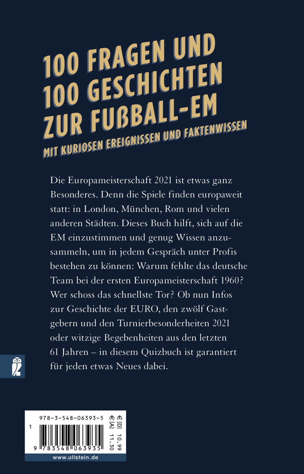 Die Europameisterschaft 2021 ist etwas ganz Besonderes. Anlässlich des 60. Geburtstags der EM finden die Spiele europaweit statt: London, München, Rom u.v.m. - ganz Europa ist im Fußballfieber. Dieses Buch hilft, sich darauf einzustimmen und genug Wissen anzusammeln, um in jedem Gespräch unter Profis bestehen zu können. Warum fehlte das deutsche Team bei der ersten Europameisterschaft 1960? Und wer schoss noch mal das schnellste Tor? Ob nun Infos zur Geschichte der EM, den elf Gastgebern und den Turnierbesonderheiten 2021 oder witzige Begebenheiten aus den letzten 61 Jahren - in diesem Quizbuch ist garantiert für jeden etwas Neues dabei.