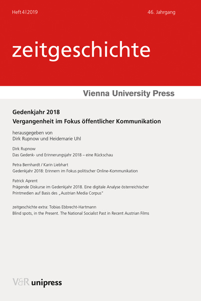 Gedenktage eröffnen immer wieder eine öffentlich-mediale Arena für die Neuverhandlung des Gedächtnisses. Dabei verweist das zu Ende des 20. Jahrhunderts entstandene Format "Gedenkjahr" auf ein gesteigertes Interesse für die Auseinandersetzung mit einer traumatischen Vergangenheit. Vor diesem Hintergrund wurde 2018 in Österreich ein "Supergedenkjahr" mit zwei Brennpunkten begangen: 100 Jahre Gründung der Republik Österreich 1918 und 80 Jahre "Anschluss" 1938. Die Ende 2017 geschlossene Koalition von ÖVP und FPÖ verlieh der Frage nach dem Umgang des offiziellen Österreich mit seiner Vergangenheit zusätzliche Brisanz. Die Analyse der politischen und öffentlichen Kommunikation im Gedenkjahr 2018 orientiert sich an methodisch innovativen Forschungsperspektiven: u.a. werden die offiziellen Social-Media-Einträge zentraler politischer Akteure mittels einer multimodalen qualitativen Inhaltsanalyse untersucht und das Austrian Media Corpus (AMC), eines der größten digitalen Text-Corpora im gesamten deutschen Sprachraum, in einem Digital Humanities-Pilotprojekt mit Text Mining-Methoden im Hinblick auf eine computergestützte, (semi-)automatische Erschließung semantischer Inhalte ausgewertet. Die Beiträge geben einen Einblick in die Debatten und Kontroversen des Gedenkjahres 2018, darüber hinaus aber auch in die neuen methodischen Potentiale einer Verschränkung zeitgeschichtlicher Fragestellungen mit Verfahren der Digital Humanities. Memorial days always offer a public-media arena for renegotiating memories. Here, the format "memorial year" created by the end of the 20th century refers to an increasing interest in dealing with a traumatic past. With reference to this, Austria celebrated a "Super memorial year" remembering the 100th anniversary of the founding of the Republic Austria and the 80th anniversary of the annexation to Nazi Germany in 1938. The contributions offer an insight in the debates and controversies surrounding the memorial year 2018. Furthermore, they present new methodical potentials of a connection of contemporary issues with methods of digital humanities.