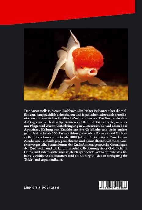 Der Autor stellt in diesem Fachbuch alles bisher Bekannte über die vielfältigen, hauptsächlich chine si schen und japanischen, aber auch amerikanischen und englischen Goldfisch-Zuchtformen vor. Das Buch steht dem Anfänger wie auch dem Spezialisten mit Rat und Tat zur Seite, wenn es um Pflege und Zucht, Unterbringung in Gartenteich, Schaubecken oder Aquarium, Heilung von Krankheiten der Goldfische und vieles andere geht. Auf mehr als 250 Farbabbildungen werden Formen- und Farbenvielfalt der schon vor mehr als 1000 Jahren für ästhetische Zwecke zur Zierde von Teichanlagen gezüchteten und damit ältesten Schmuckhaustiere vorgestellt. Stammbäume der Zuchtformen, genetische Grundlagen