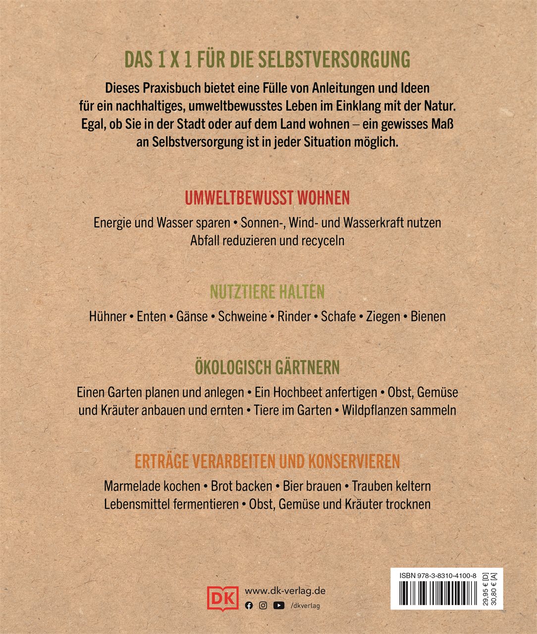 Welche erneuerbaren Energien können genutzt werden und wie hält man Tiere am besten? Wie gelingen das Energiesparen zu Hause, der eigene Anbau von Obst, Gemüse und Kräutern sowie die Herstellung von Wein? Wie wird man Hobby-Imker*in? Wie kann im Alltag Plastik vermieden werden? Welche essbaren Blüten kann man im eigenen Garten anpflanzen? Der aktualisierte DK-Bestseller für Selbstversorger liefert die Antworten für ein umweltbewussteres und nachhaltiges Leben: