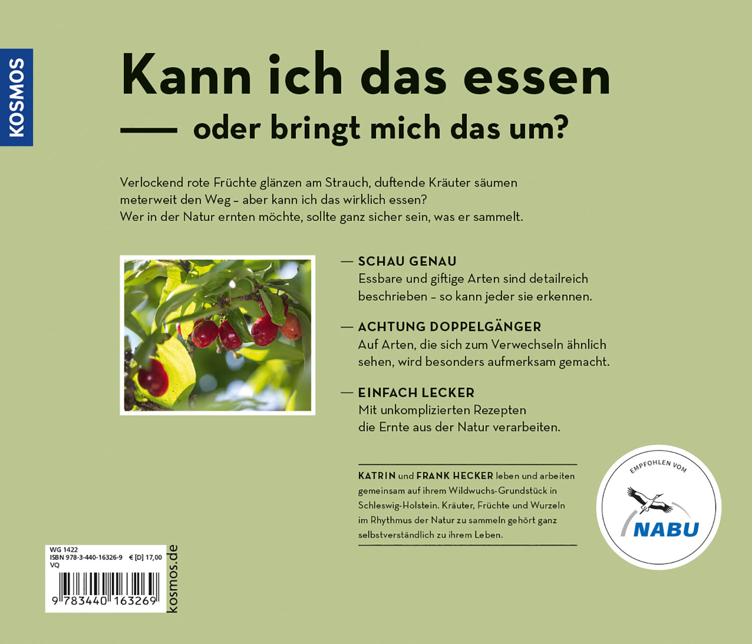 Immer mehr Menschen haben Spaß daran, sich am reich gedeckten Tisch der Natur zu bedienen. Aber kann ich die selbst gesammelten Blätter auch wirklich essen? Sind die Beeren genießbar oder bringen sie mich womöglich um? Dieser Ratgeber zeigt Einsteigern, wie man essbare Pflanzen und ihre giftigen Doppelgänger sicher erkennt. Unterteilt nach Blättern, Blüten und Früchten werden die häufigsten essbaren Wildpflanzen und ungenießbare Verwechslungsarten vorgestellt. Zusätzlich zeigt das Buch giftige Arten, die man unbedingt kennen sollte. Detaillierte Fotos und markante Beschreibungen garantieren zweifelsfreies Bestimmen. Und mit den kreativen Tipps und Rezepten wird dieser trendige Naturführer zum reinen Genuss.