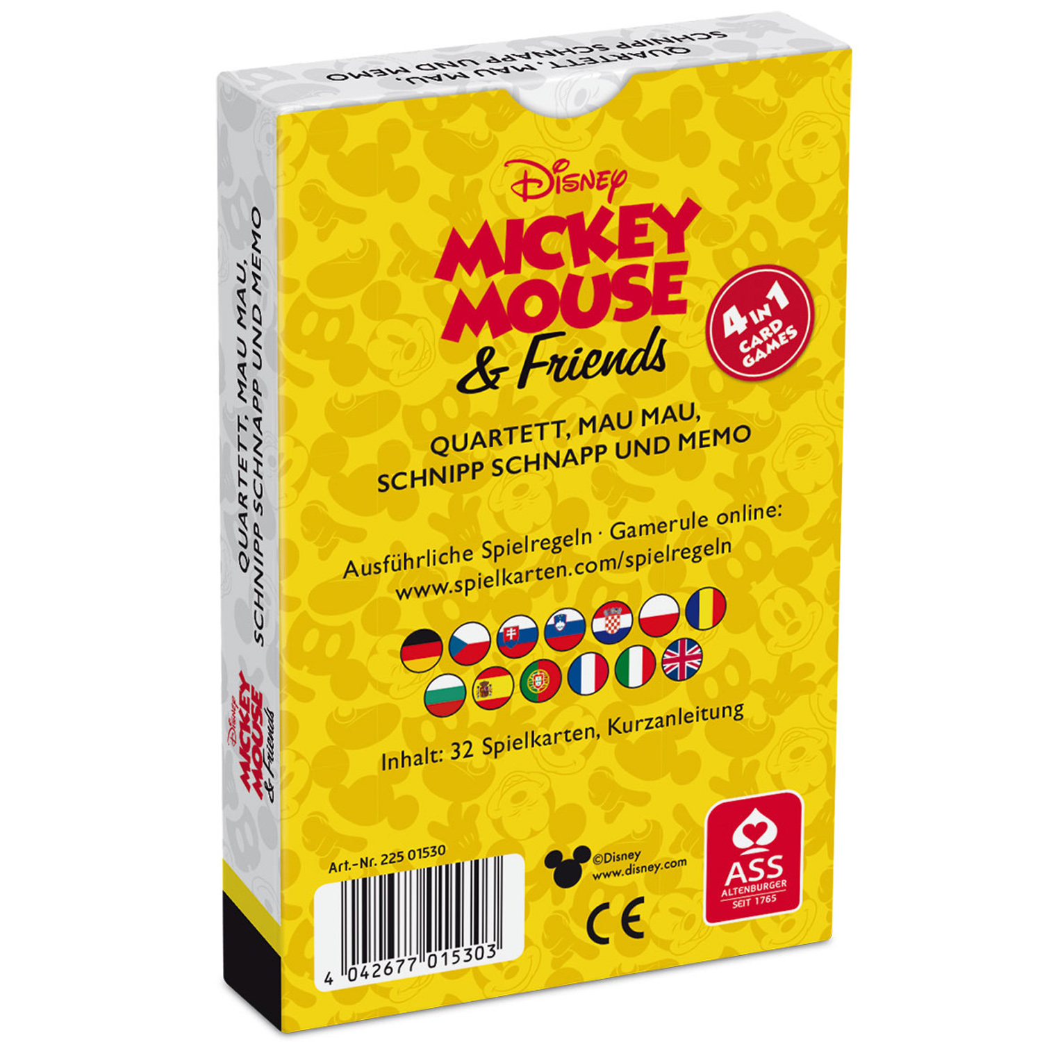 Wer kennt nicht Micky, Minnie, Pluto & Co.? Micky Maus zählt seit über 90 Jahren als Erfolgsgarant und seither wurden ca. 20 Filme, zahllose Kurzclips, Comics und Serien zu den Disney Charakteren veröffentlicht. Kinder ab 4 Jahren können mit Mickey und seinen Freunden ein Spielchen wagen. Das liebevoll gestaltete Kartenset umfasst vier verschiedene Spiele: Quartett, Mau Mau, Schnipp Schnapp und Memo. Wer wird am Ende als Sieger vom Tisch gehen?
