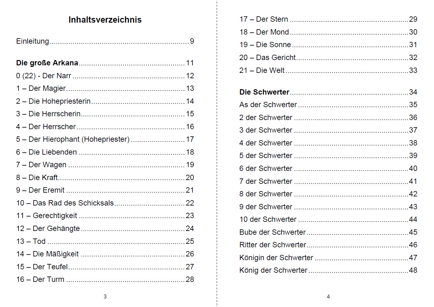 Schau dir am besten den Blick ins Buch an. Dort siehst du, wie ich die einzelnen Deutungen der Tarotkarten aufgebaut habe und wieviel Platz du noch zum Ausfüllen hast.