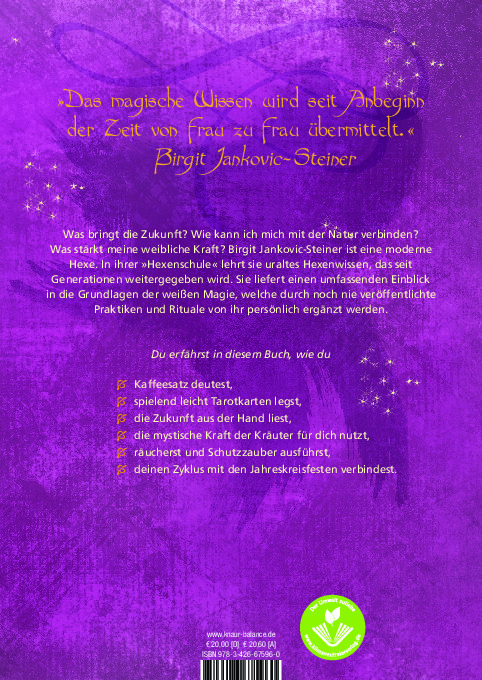 Was bringt die Zukunft? Wie kann ich mit der Natur in Einklang leben? Was stärkt meine weibliche Kraft? Birgit Jankovic-Steiner ist das, was wir eine moderne Hexe nennen: feminin, magisch und stark. In der "Hexen-Schule" gibt sie einen umfassenden Einblick in die Grundlagen der weißen Magie.