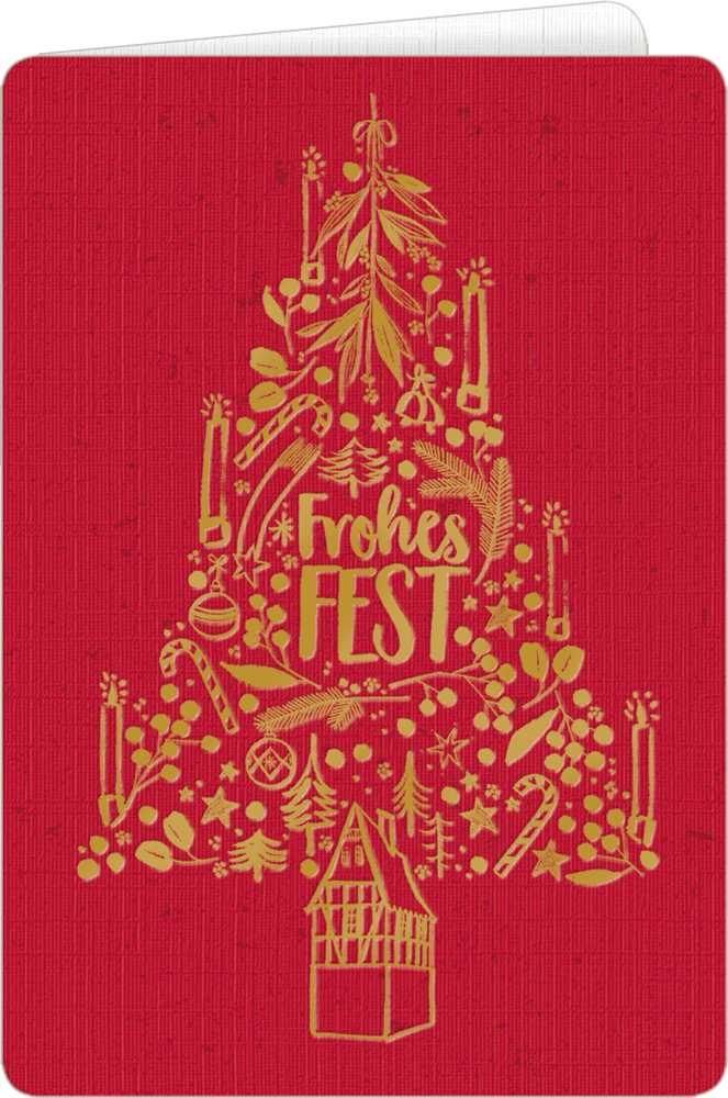 Weihnachtskarten mit glänzender Goldfolienveredelung und Hochprägung für besonders festliche Grüße.