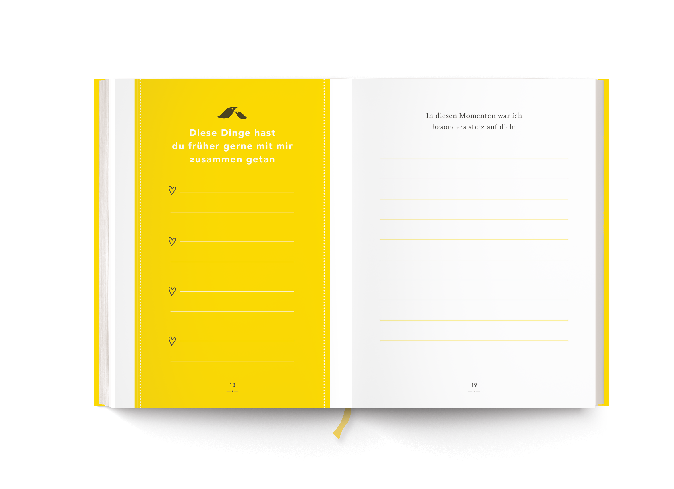 - Aufgeteilt in vier Themenblöcke: 1. Erinnerungen an früher, 2. Über die besondere Person, die du bist, 3. Warum du mir wichtig bist, 4. Wünsche und Träume für uns beide