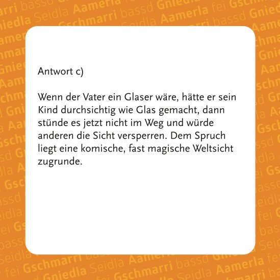 | Schlagworte | Bücher • Bühnenprogramm • deutsch fränkisch • deutsch fränkisch Übersetzer • Dialekt • Dialekte • dialekt fränkisch • Erwachsenenspiele • etzerdla • fragen und antworten spiel • Frage und Antwort • frängisch • Franken • franken dialekt • Frankenland • franken quiz • Fränkisch • fränkisch deutsch • fränkisch dialekt • fränkisch Duden • fränkische ausdrücke • Fränkische Mundart • fränkische mundartdichter • fränkischer akzent • Fränkischer Dialekt • fränkischer dialekt wörter • fränkischer dialekt wörterbuch • fränkische Redewendungen • fränkischer Kabarettist • fränkischer text • fränkische sätze • Fränkische Schimpfwörter • Fränkische Sprache • fränkische sprichwörter • fränkische Sprüche • fränkische sprüche mundart • Fränkisches Wörterbuch • fränkische übersetzung • fränkische Witze • fränkische worte • fränkische Wörter • Fränkisch für Anfänger • fränkisch für anfänger buch • fränkisch für anfänger lustig • fränkisch lernen • fränkisch lexikon • fränkisch nürnberg • fränkisch quiz • fränkisch reden • fränkisch Übersetzer • fränkisch wörterbuch • geburtstag geschenke • Geburtstag Geschenk Mann • Geburtstagsgeschenke • geburtstagsgeschenke für den freund • geburtstagsgeschenke für männer • geburtstagsgeschenke ideen • Geburtstagsgeschenk Freundin • geburtstagsgeschenk für ehemann • geburtstagsgeschenk für freund • Geburtstagsgeschenk für Männer • geburtstagsgeschenk mann • Geschenk • geschenke für die beste freundin • Geschenke für Frauen • Geschenke für Freund • geschenke für freunde • geschenke für freundin • geschenke für großeltern • geschenke für leute die alles haben • geschenke für mann • Geschenke für Männer • geschenke für männer zum geburtstag • Geschenke für Oma und Opa • geschenke für opa • geschenke für papa • Geschenke für Väter • geschenke großeltern • geschenke ideen • geschenke männer • geschenke zum abschied • Geschenke zum Geburtstag • geschenke zu weihnachten • geschenk für ehemann • geschenk für einen mann • Geschenk für Freund • Geschenk für Männer • geschenk für meinen freund • Geschenk für Mutter • Geschenk für Oma • Geschenk für Partner • Geschenk für Vater • Geschenkideen • geschenkideen freund • Geschenkideen für Freund • geschenkideen für großeltern • Geschenkideen für Mama • Geschenkideen für Männer • geschenkideen für oma und opa • geschenkideen für opa • geschenkideen für väter • geschenkideen männer • geschenkideen oma und opa • geschenkideen opa • Geschenkideen Weihnachten • Geschenkideen zu Weihnachten • Geschenk Oma und Opa • Geschenk Opa • Geschenk Papa • Gesellschaftsspiele • gesellschaftsspiele erwachsene • gräschkurs fränkisch • Haberkamm • Helmut Haberkamm • ideen für geburtstagsgeschenke • Ideen für Geschenke • in franken • kartenspiele für erwachsene • Kleine Geschenke • kleine geschenke zum geburtstag • Lokalkolorit • lustige fränkische sätze • lustige Geschenke • lustige Geschenke für Männer • lustige gesellschaftsspiele • lustige Rätsel • lustige spiele • männer geschenke • männer geschenkideen • Mundart • Mundartdichter • mundart festival • mundartfestival • mundart texte • Nürnberg • nürnberg dialekt • Oma Opa Geschenk • Oma und Opa Geschenke • Opa Geschenk • Opa Geschenke • party spiele erwachsene • partyspiele erwachsene • partyspiele für erwachsene • Quiz • Quizfragen • quizfragen mit antworten • quiz fragen und antworten • Quizspiel • quiz spiele • quiz spiele für erwachsene • quizspiele für party • Rätseln • Rätselspaß • Reisespiele • reisespiele für erwachsene • schöne geschenke für männer • Spieleabend • Spiele für Erwachsene • spiele quiz • spiel erwachsene • Spielkarten • typisch fränkisch • typisch fränkische wörter • typisch fränkisch wörter • übersetzer fränkisch • Übungen • Vokabelheft • Weihnachtsgeschenke • Weihnachtsgeschenke für Männer • weihnachtsgeschenke männer • Weihnachtsgeschenk Freund • weihnachtsgeschenk für männer • Weihnachtsgeschenk Großeltern • Weihnachtsgeschenkideen • witzige Geschenke • witzige geschenke für männer • Wörterbuch • wörterbuch fränkisch • Wortschatz |