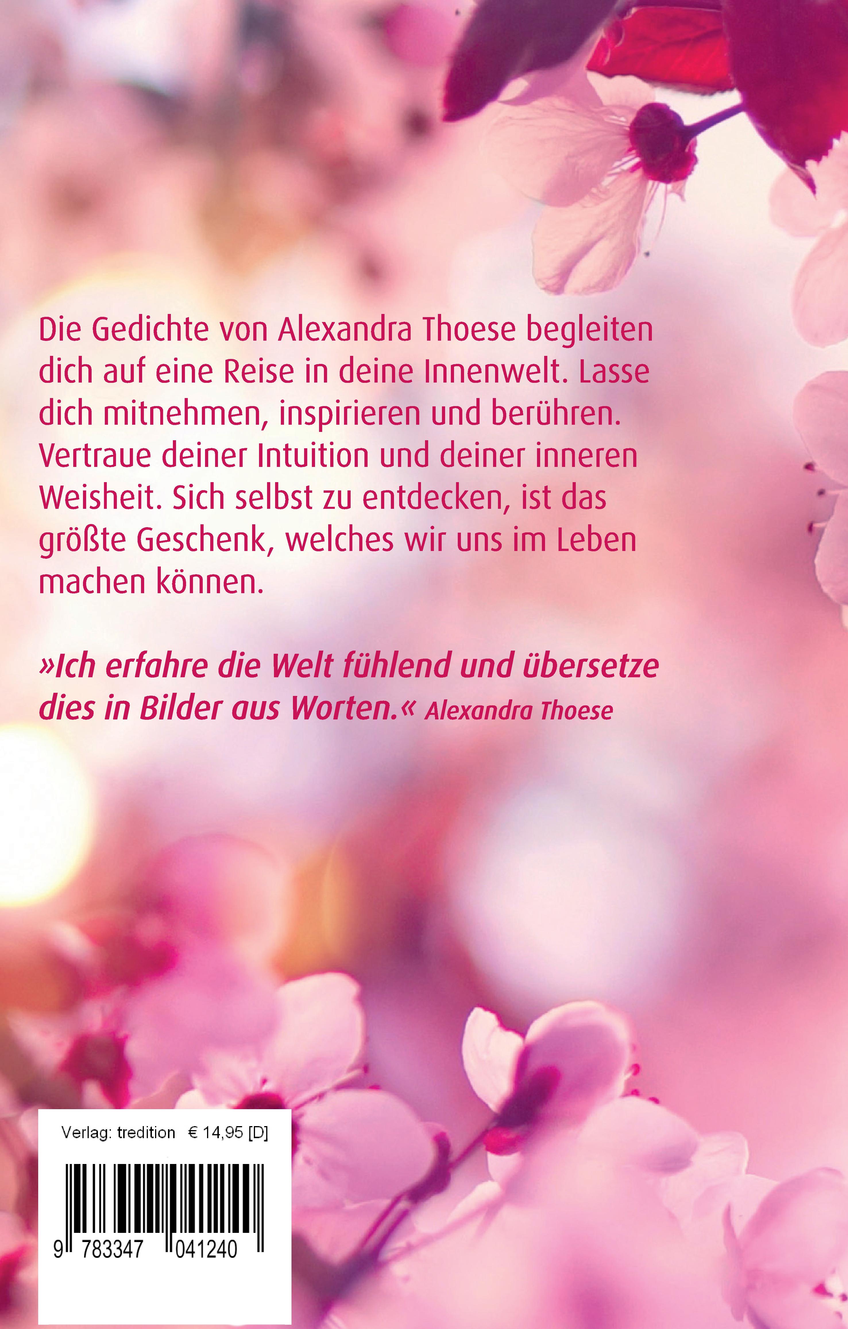 Die Gedichte von Alexandra Thoese begleiten dich auf eine Reise in deine Innenwelt. Lasse dich mitnehmen, inspirieren und berühren. Vertraue deiner Intuition und deiner inneren Weisheit. Sich selbst zu entdecken, ist das größte Geschenk, welches wir uns im Leben machen können.