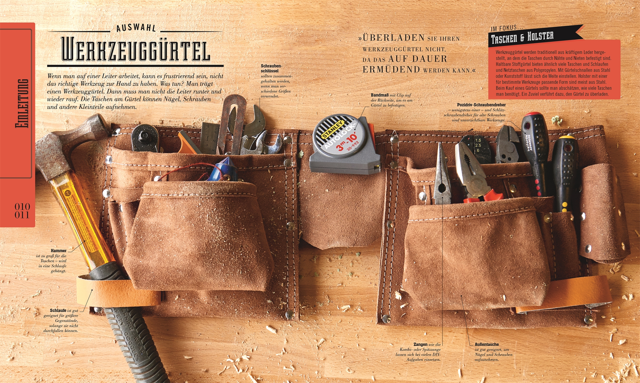 Über 200 Handwerkzeuge werden auf großformatigen Bildern detailreich in Szene gesetzt inklusive der verschiedenen Modelle und Unterschiede. Sie betrachten Struktur und Aufbau aus allen Perspektiven und lernen Winkelmaß, Säge, Zwingen, Hobel & Co. im Detail kennen.