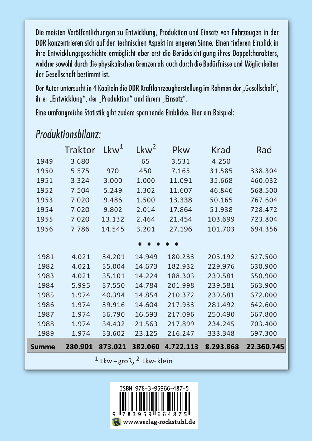 Die meisten Veröffentlichungen zu Entwicklung, Produktion und Einsatz von Fahrzeugen in der DDR konzentrieren sich auf den technischen Aspekt im engeren Sinne. Einen tieferen Einblick in ihre Entwicklungsgeschichte ermöglicht aber erst die Berücksichtigung ihres Doppelcharakters, welcher sowohl durch die physikalischen Grenzen als auch durch die Bedürfnisse und Möglichkeiten der Gesellschaft bestimmt ist.