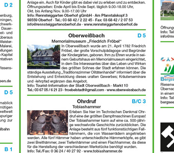 Sehenswürdigkeiten in Erfurt und Weimar als ehemaliger Kulturstadt Europas werden in vielen Reiseführern beschrieben. Doch wer gibt Auskunft über Ausflugsziele im südlich angrenzenden Thüringer Wald? Dieser Erlebnisführer beschreibt kurz und informativ, was den Besucher in dieser Region erwartet: Sportliche Angebote rund um Oberhof, Zella-Mehlis und Lauscha, Kurioses wie das Gartenzwergmuseum in Gräfenroda und Schauwerkstätten beispielsweise bei Neuhaus am Rennweg.