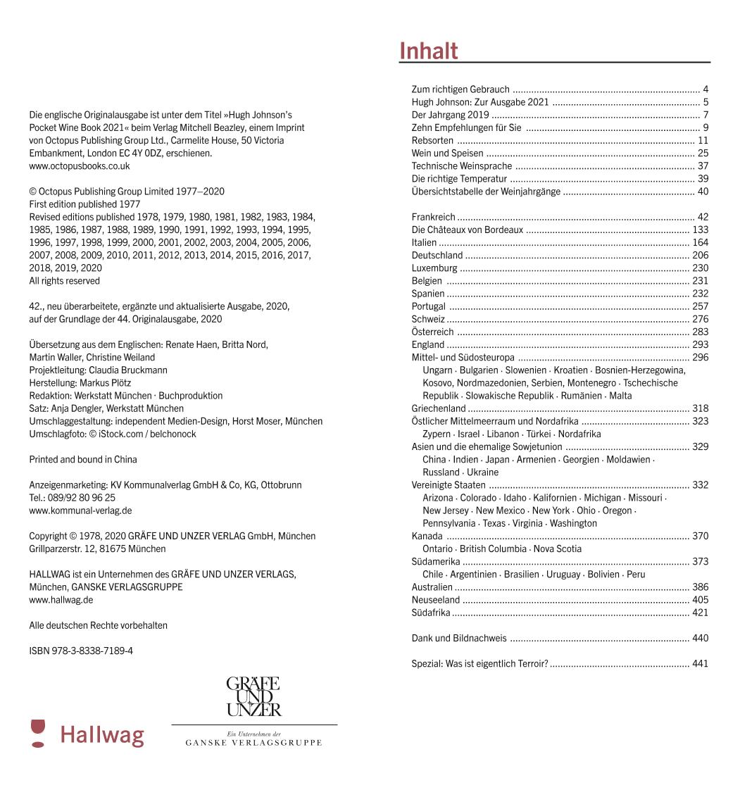 Hinweis zur OptimierungImpressumZum richtigen GebrauchHugh Johnson: Zur Ausgabe 2021Der Jahrgang 2019Zehn Empfehlungen für SieRebsortenWein und SpeisenTechnische WeinspracheDie richtige TemperaturÜbersichtstabelle der WeinjahrgängeFrankreichDie Châteaux von BordeauxItalienDeutschlandLuxemburgBelgienSpanienPortugalSchweizÖsterreichEnglandMittel- und SüdosteuropaGriechenlandÖstlicher Mittelmeerraum und NordafrikaAsien und die ehemalige SowjetunionVereinigte StaatenKanadaSüdamerikaAustralienNeuseelandSüdafrikaDankSpezial: Was ist eigentlich Terroir?
