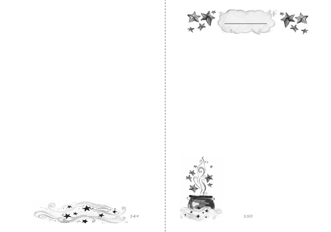 * Insgesamt 150 weiße Seiten und Verzierungen an den Rändern in Schwarzweiß gedruckt (siehe Blick ins Buch).