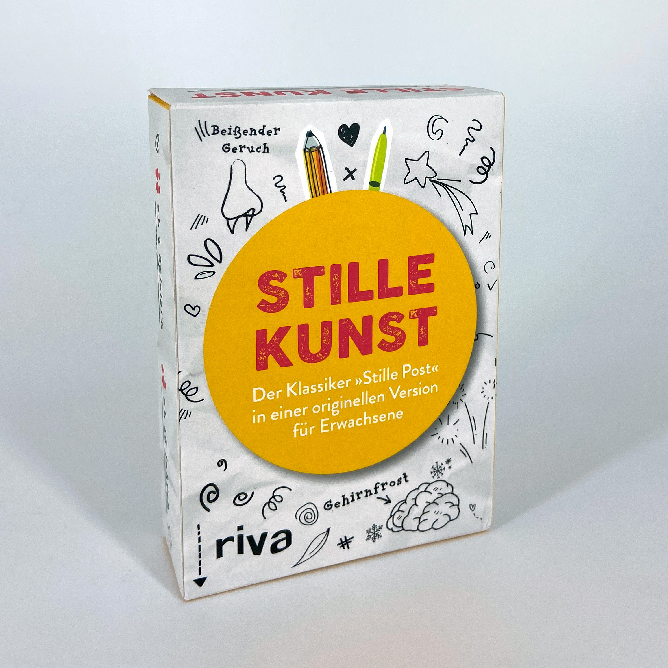 Jeder hat schon mal »Stille Post« gespielt. Doch was, wenn die Begriffe nicht weitergesagt, sondern zeichnerisch weitergegeben werden müssen? Und was, wenn es sich dabei um Begriffe wie »Warmduscher«, »Beißender Geruch« oder gar um Sprichwörter wie »Eine Schwalbe macht noch keinen Sommer« handelt?Dieses Spiel stellt euch vor eine Herausforderung: Könnt ihr absurde Begriffe und Situationen so gut zeichnen, dass sie von all euren Mitspielern erkannt werden und am Ende die richtige Lösung wieder bei euch ankommt? Seid bereit für witzige Ergebnisse!